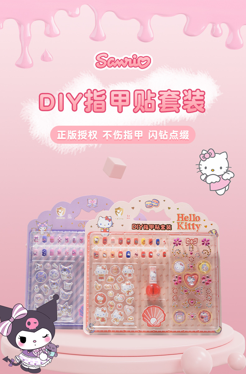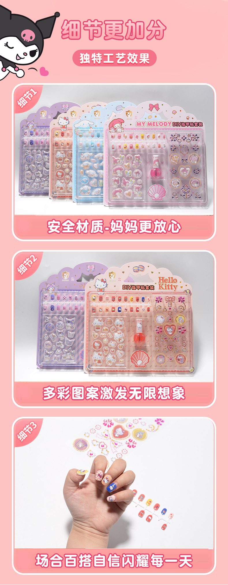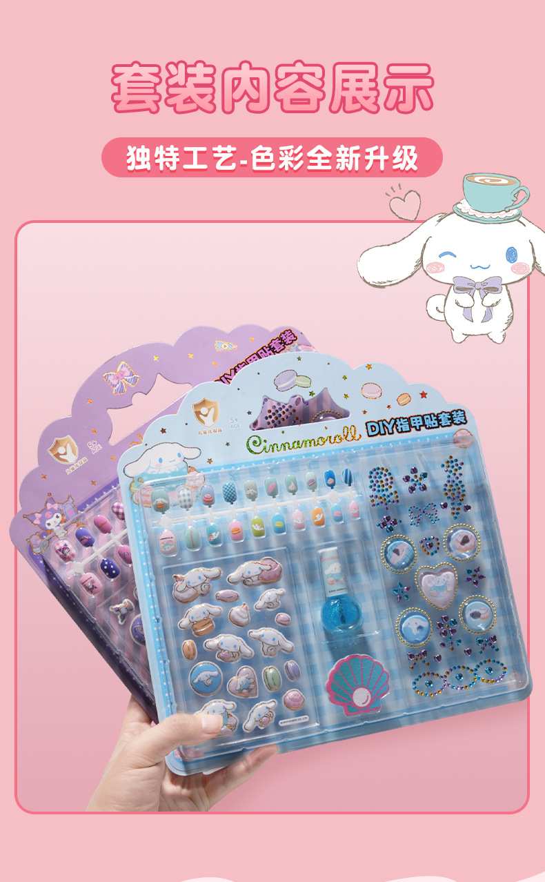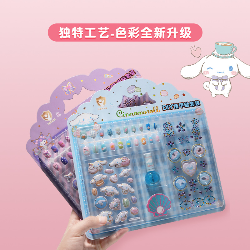 DIY指甲贴套装闪钻儿童甲片贴纸穿戴甲小女孩卡通装扮贴