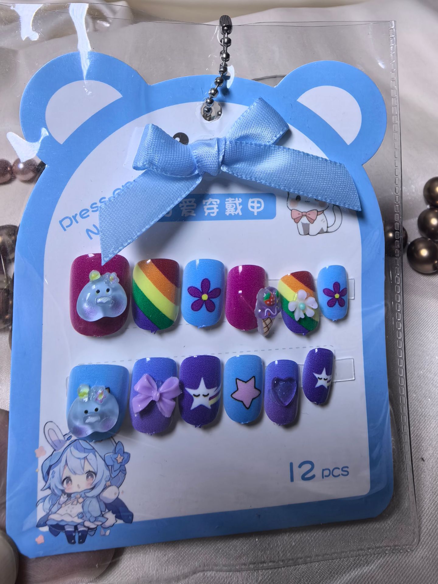 女童无毒可拆卸穿戴甲新款女孩果冻无味儿童指甲贴胶美甲贴可爱