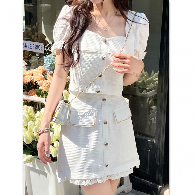 夏季新款时尚拼接白色小香风连衣裙套装小个子两件套夏季