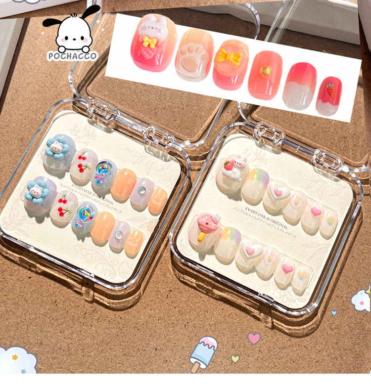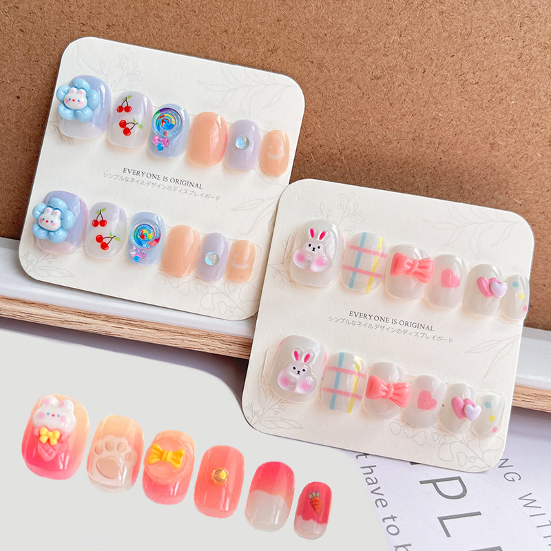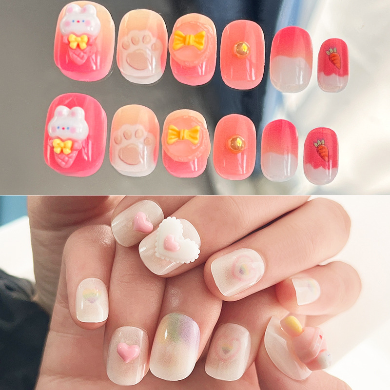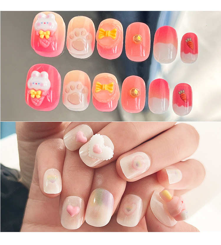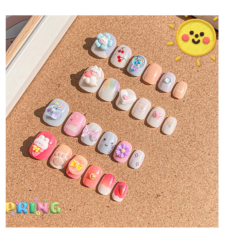 儿童手工穿戴甲卡通带配饰成品甲片贴片指甲片假指甲儿童DIY甲片