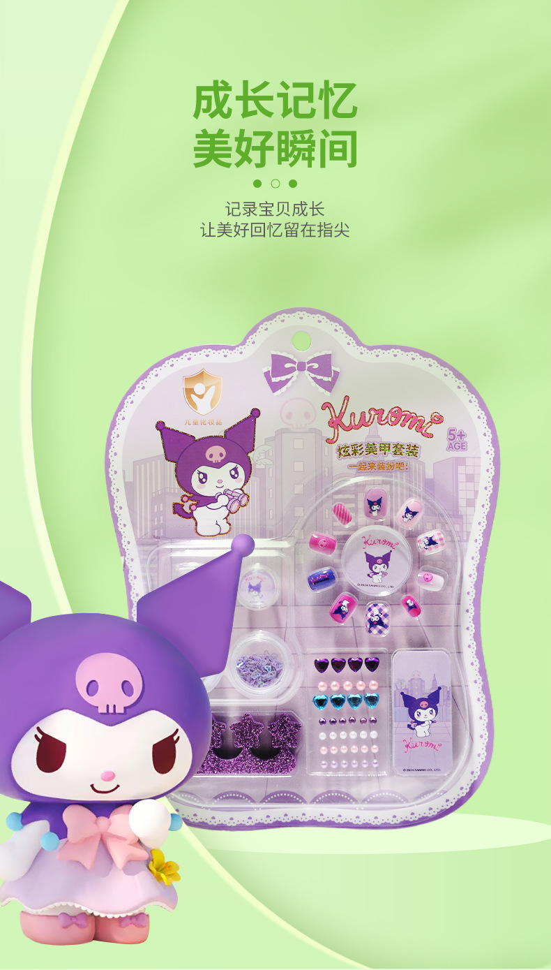 三丽鸥酷洛米炫彩美甲套装儿童小女孩指甲片贴纸全套包邮