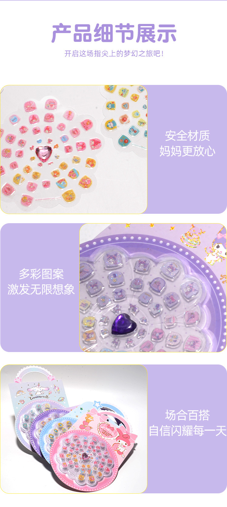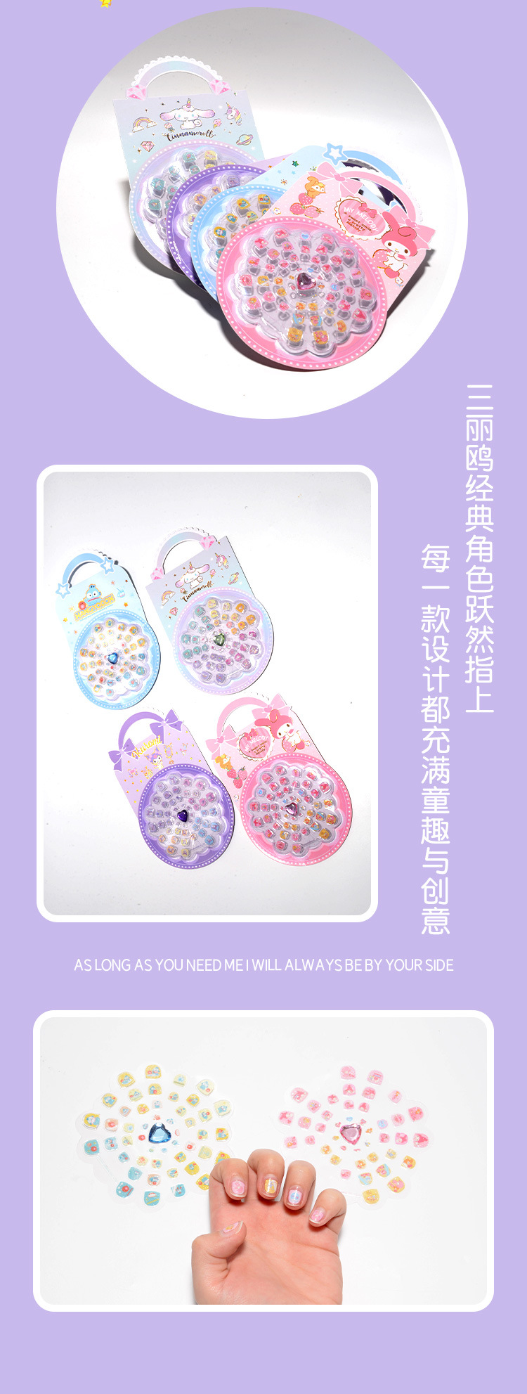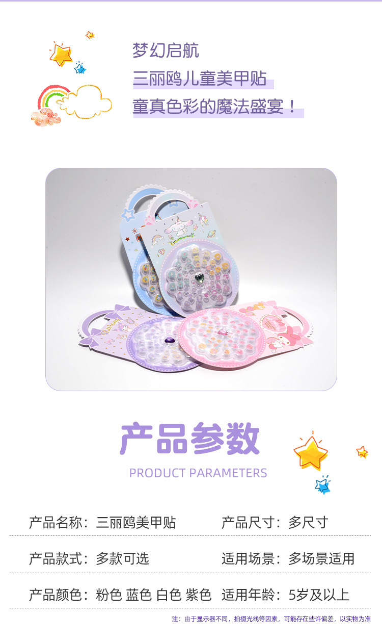 三丽鸥儿童指甲贴正版授权女童穿戴甲库洛米可爱卡通美甲玩具包邮
