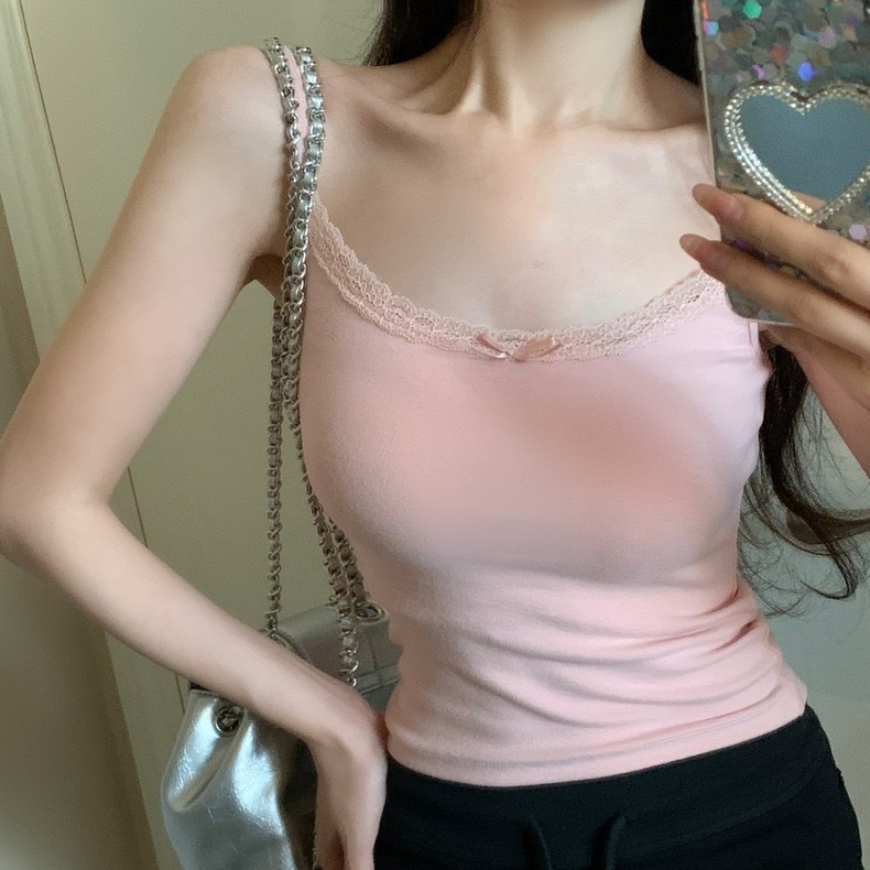 纯欲修身蕾丝蝴蝶结吊带舒适百搭打底纯色背心女