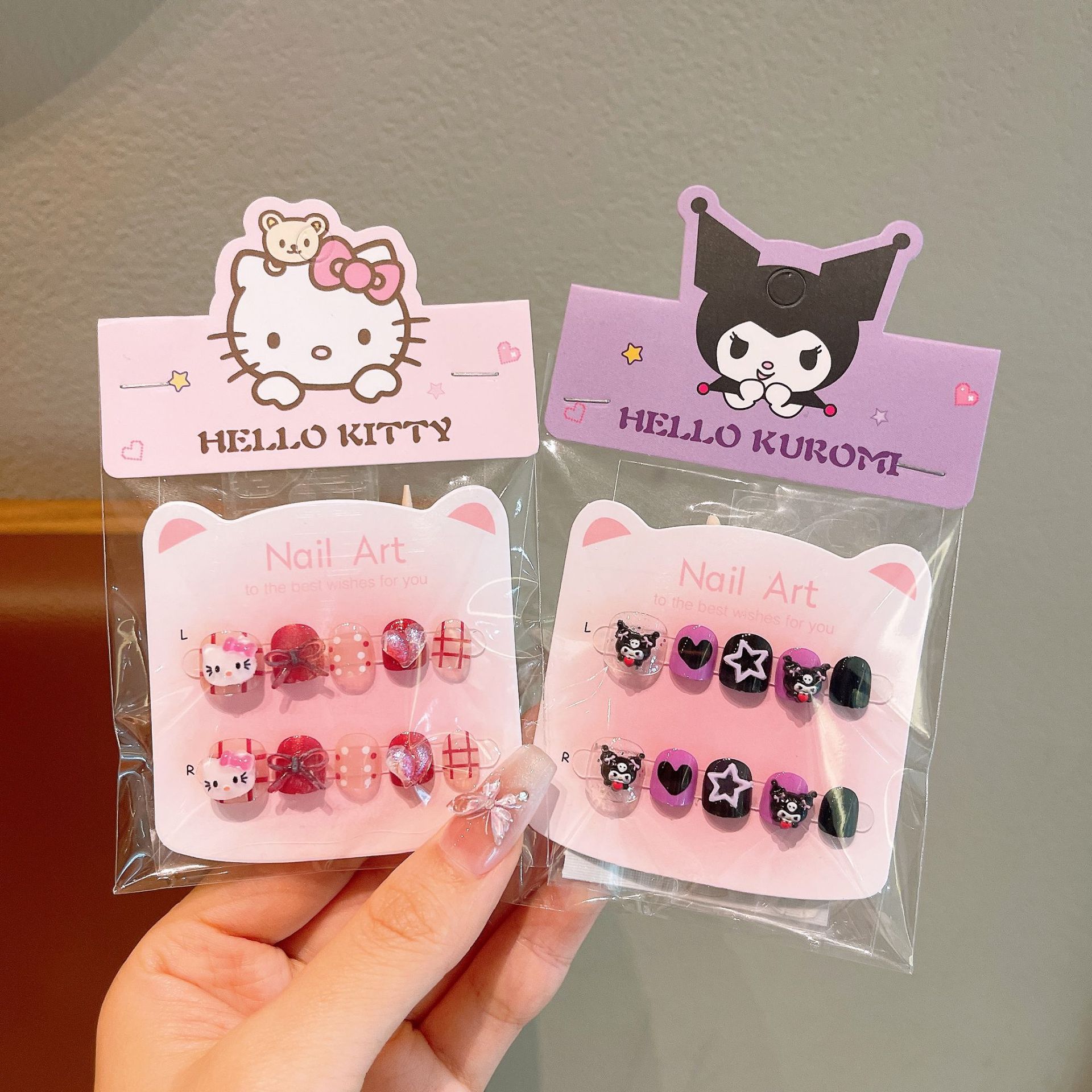 库洛米卡通儿童穿戴甲片小女孩美甲贴片新款指甲贴女童礼物玩具