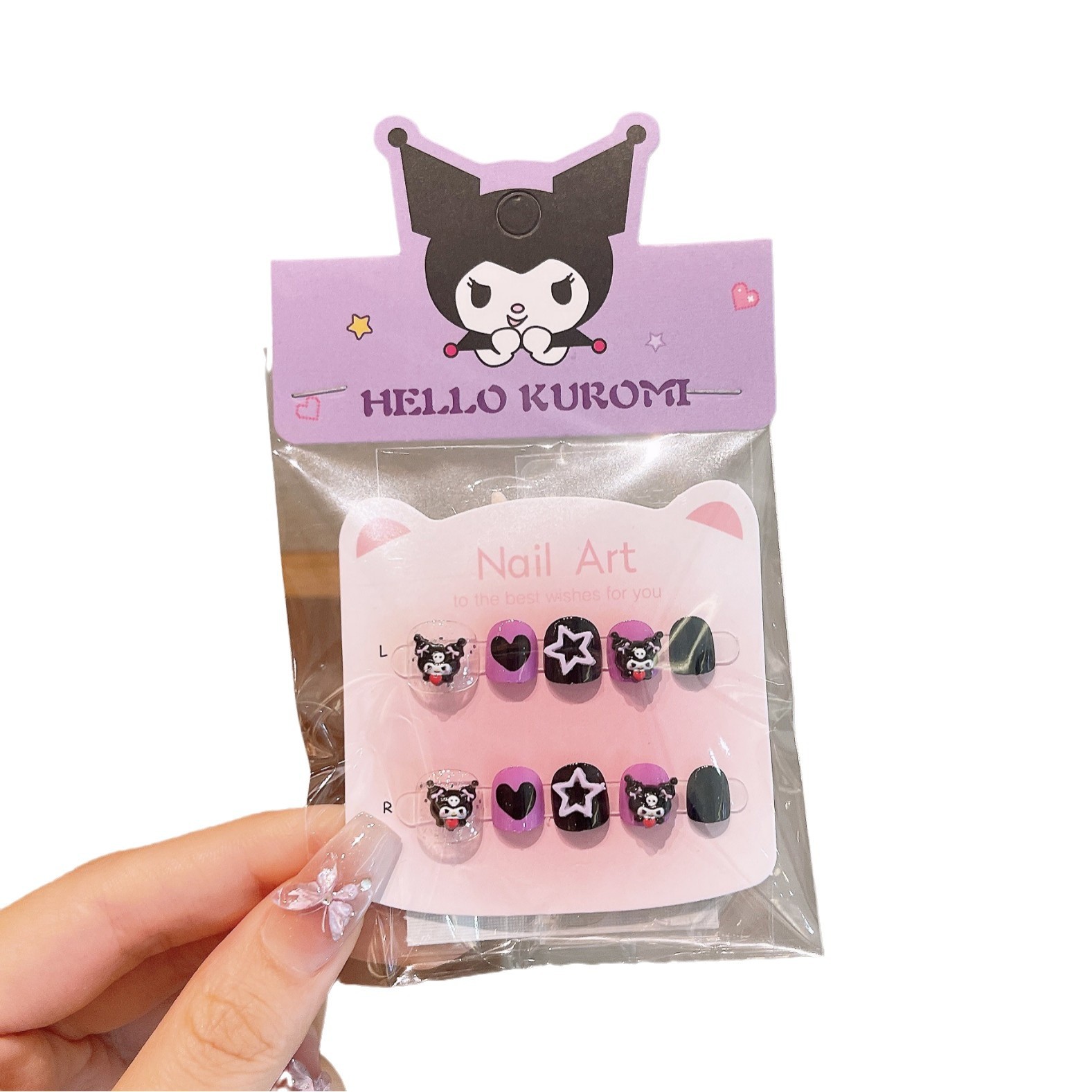 F8382-1#黑库洛米10片穿戴甲+一对耳夹