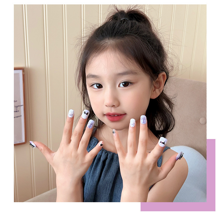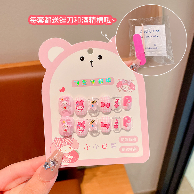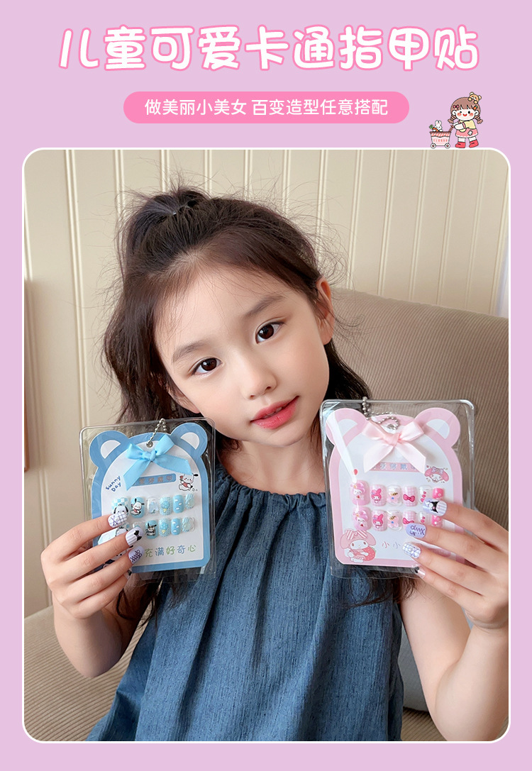 儿童库洛米软假指甲贴宝宝美甲贴片穿戴甲女孩可拆卸穿戴卡通礼物