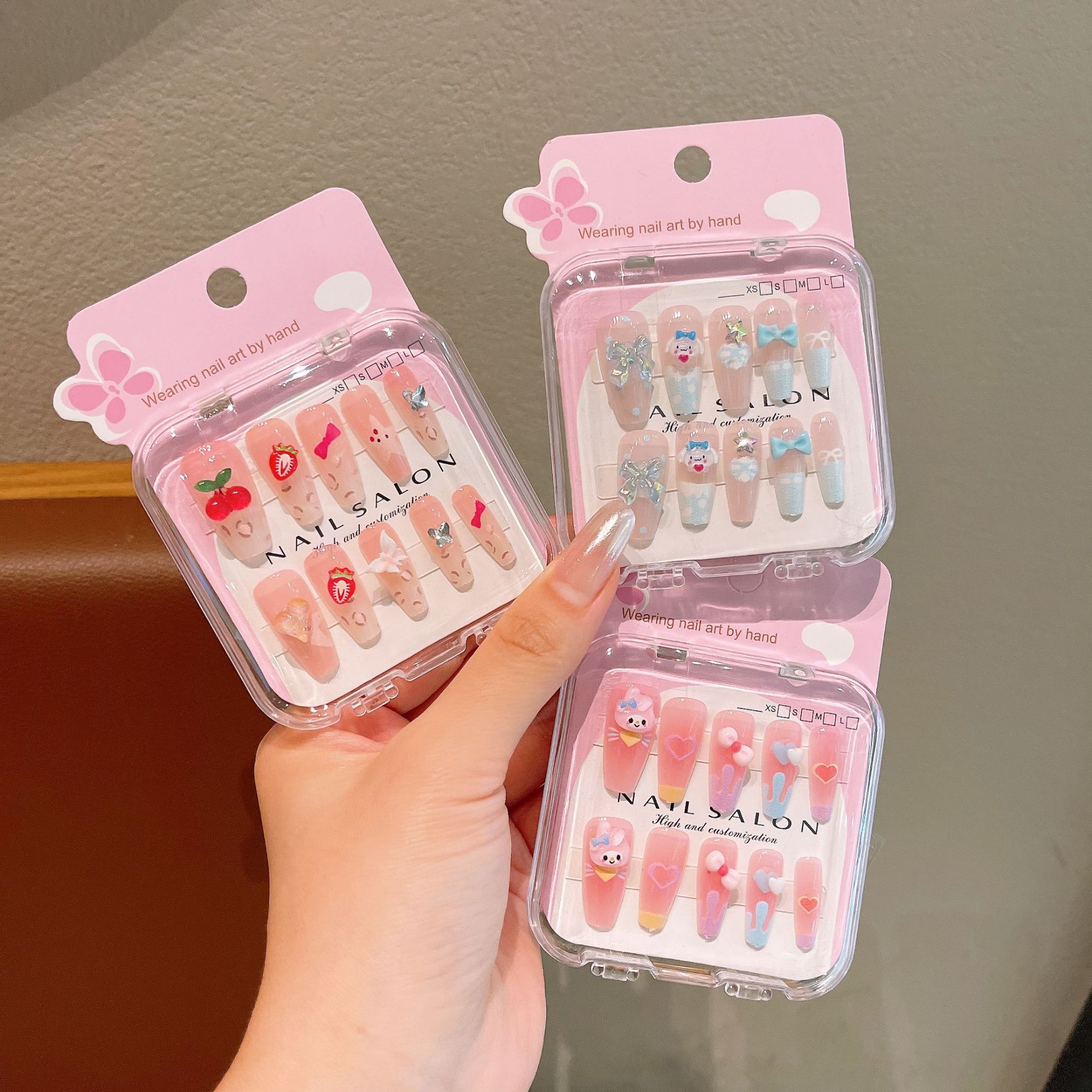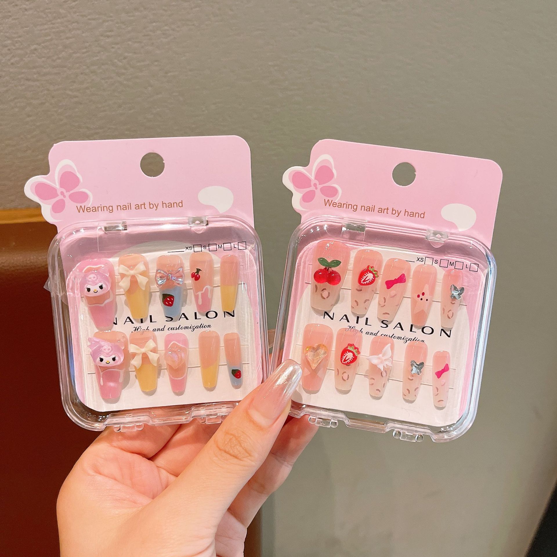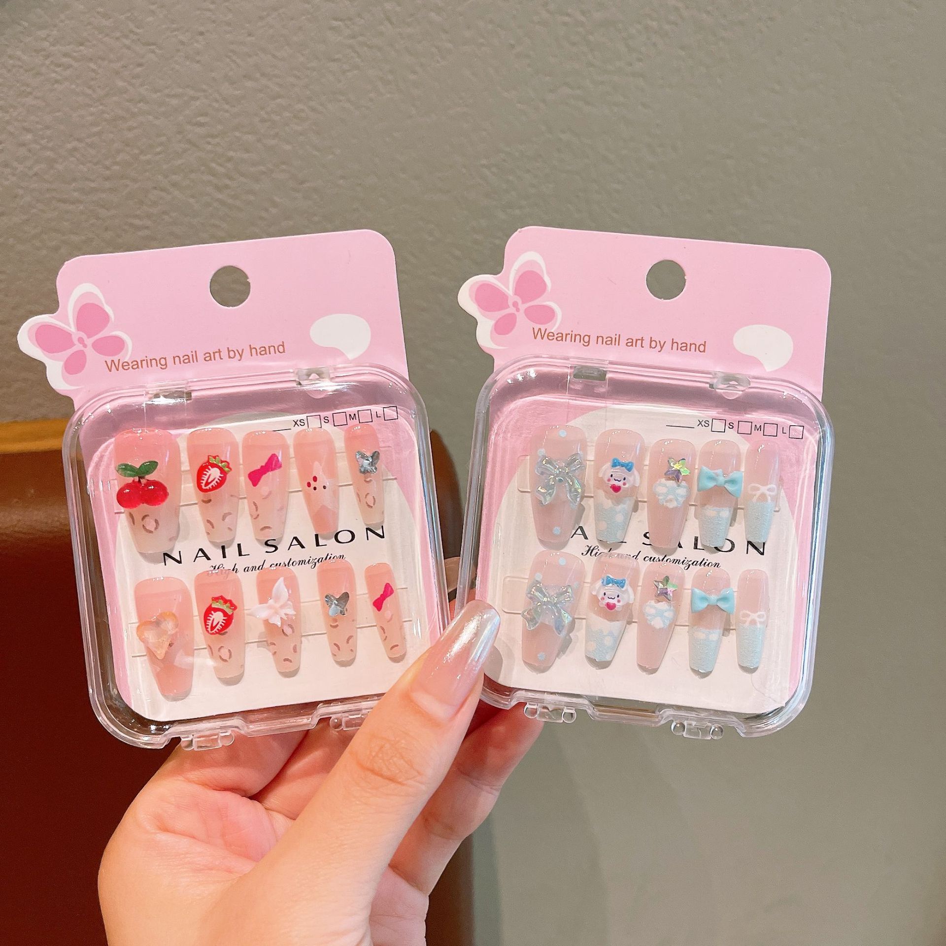 F8524-4#樱桃草莓长款穿戴甲10只装