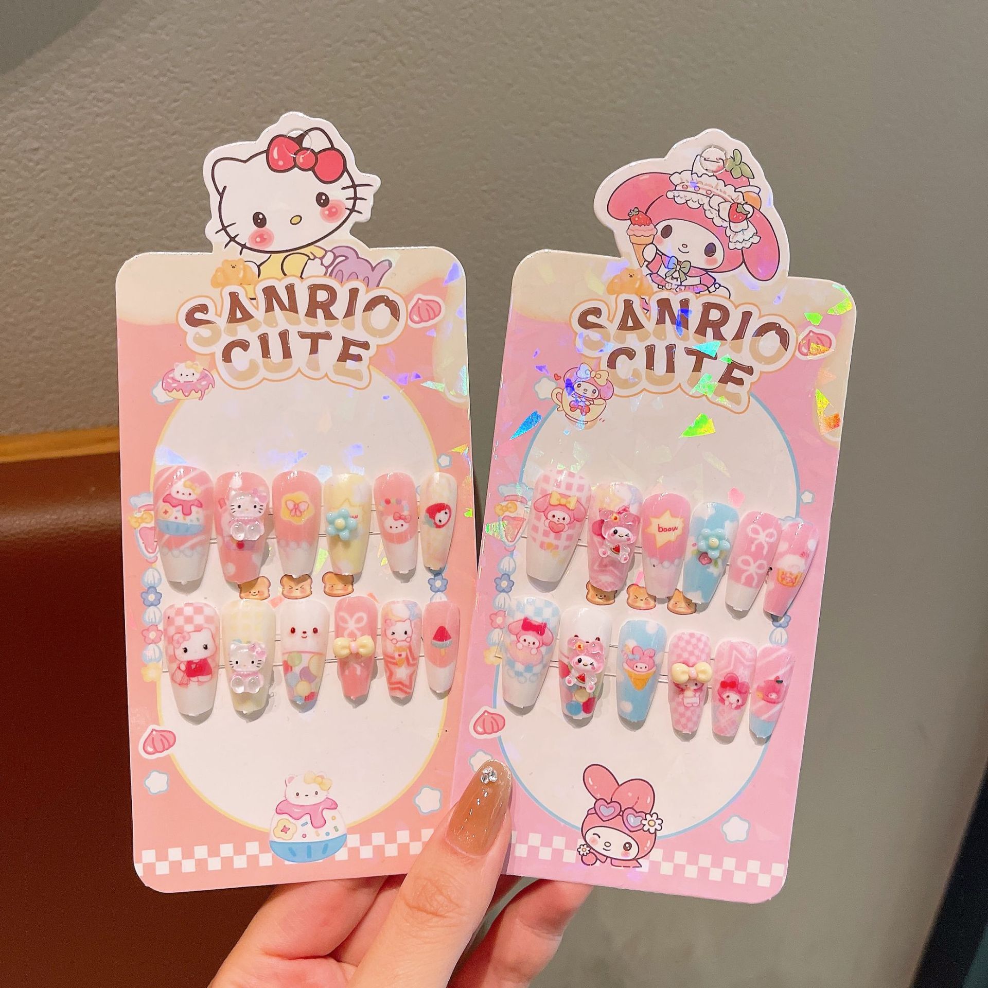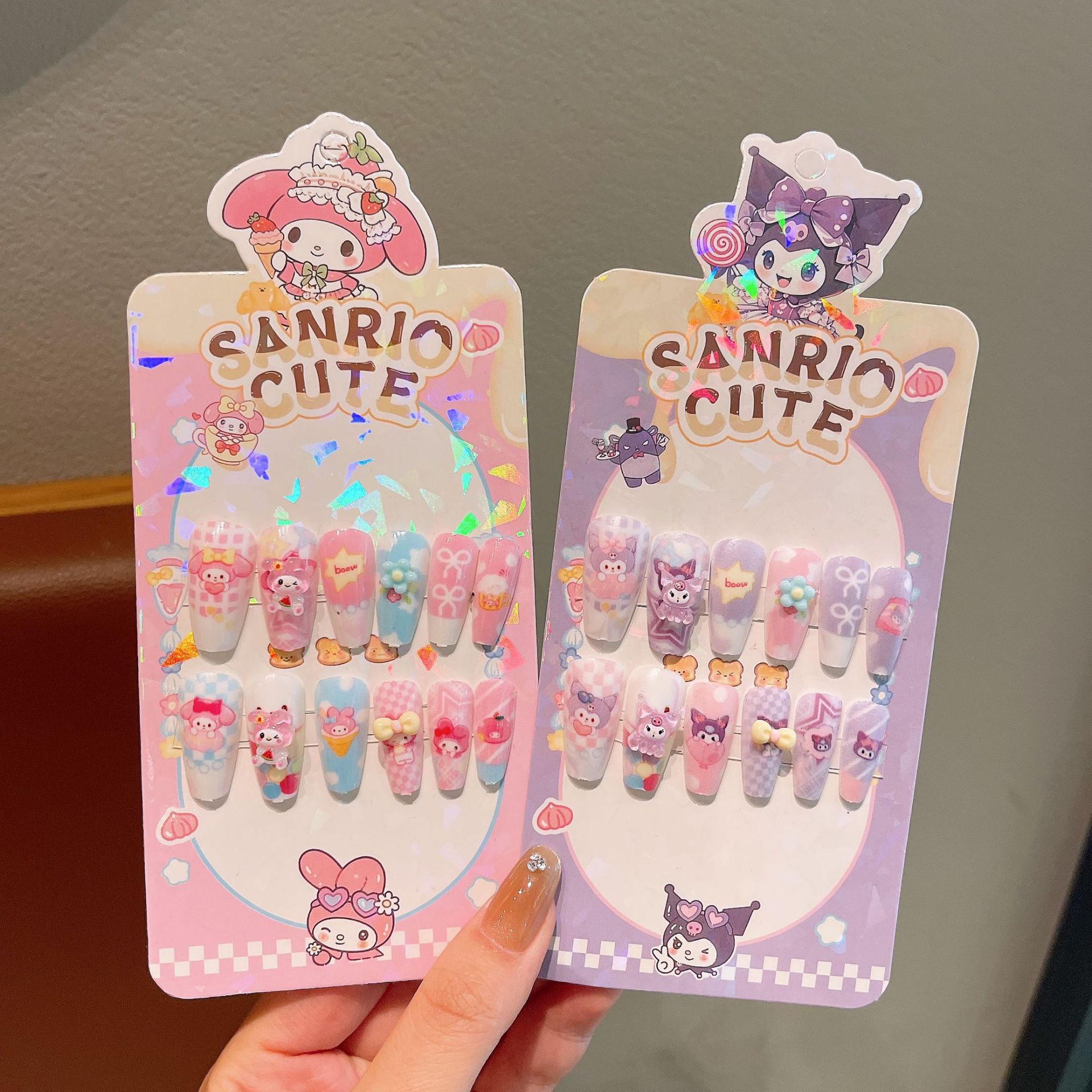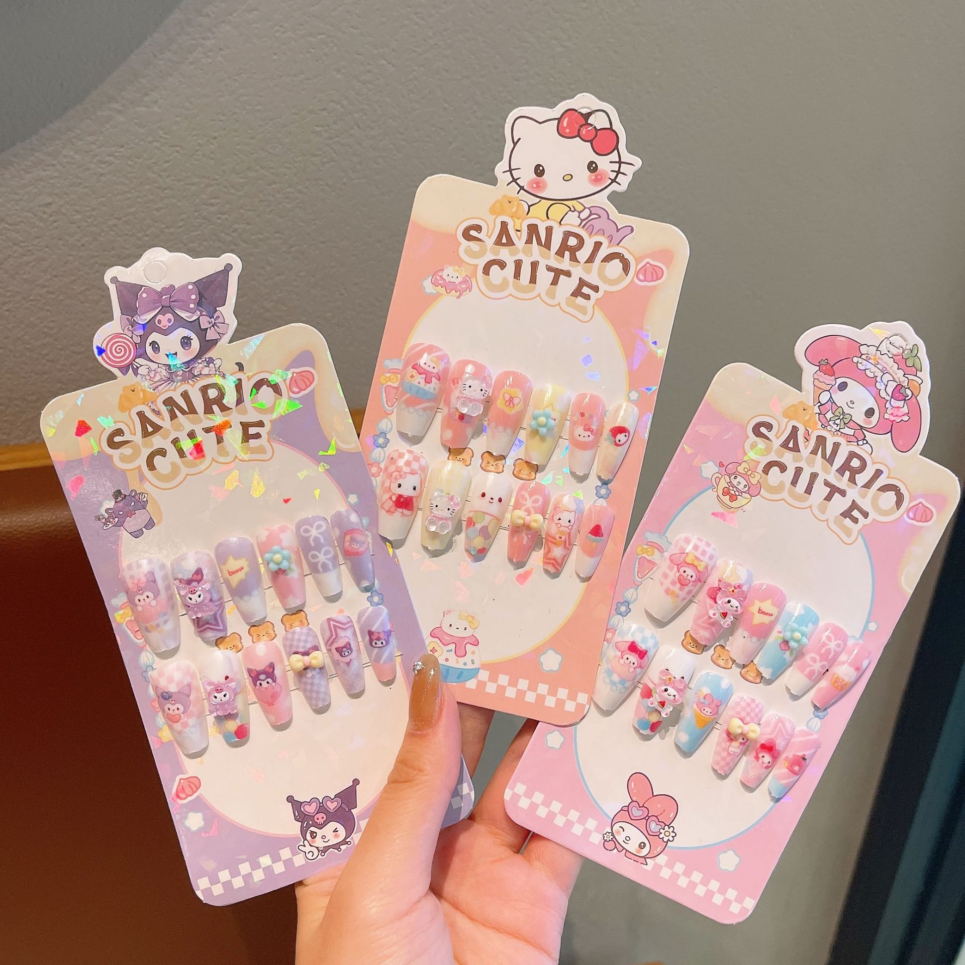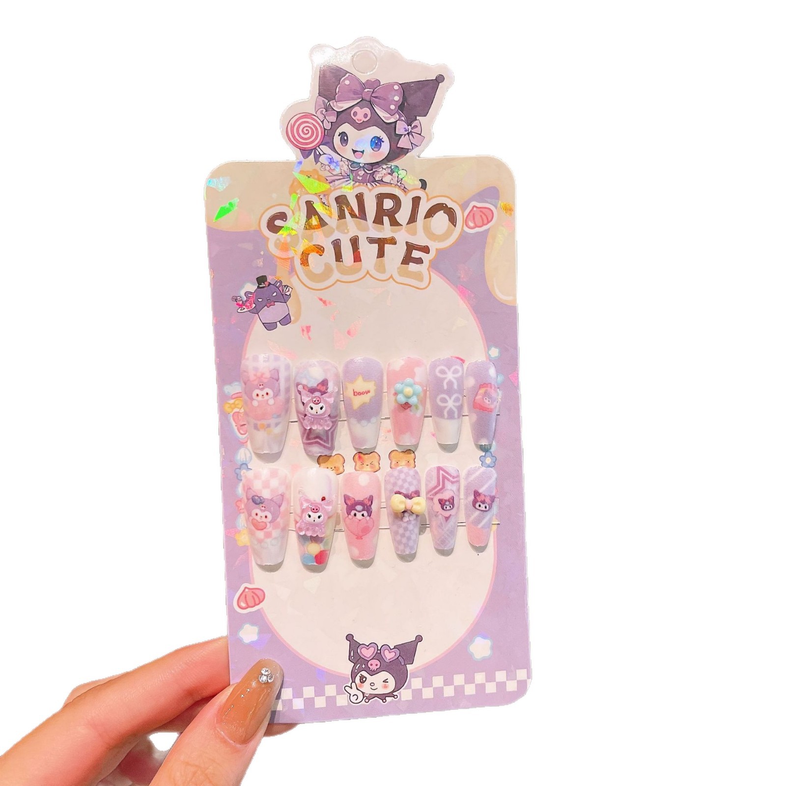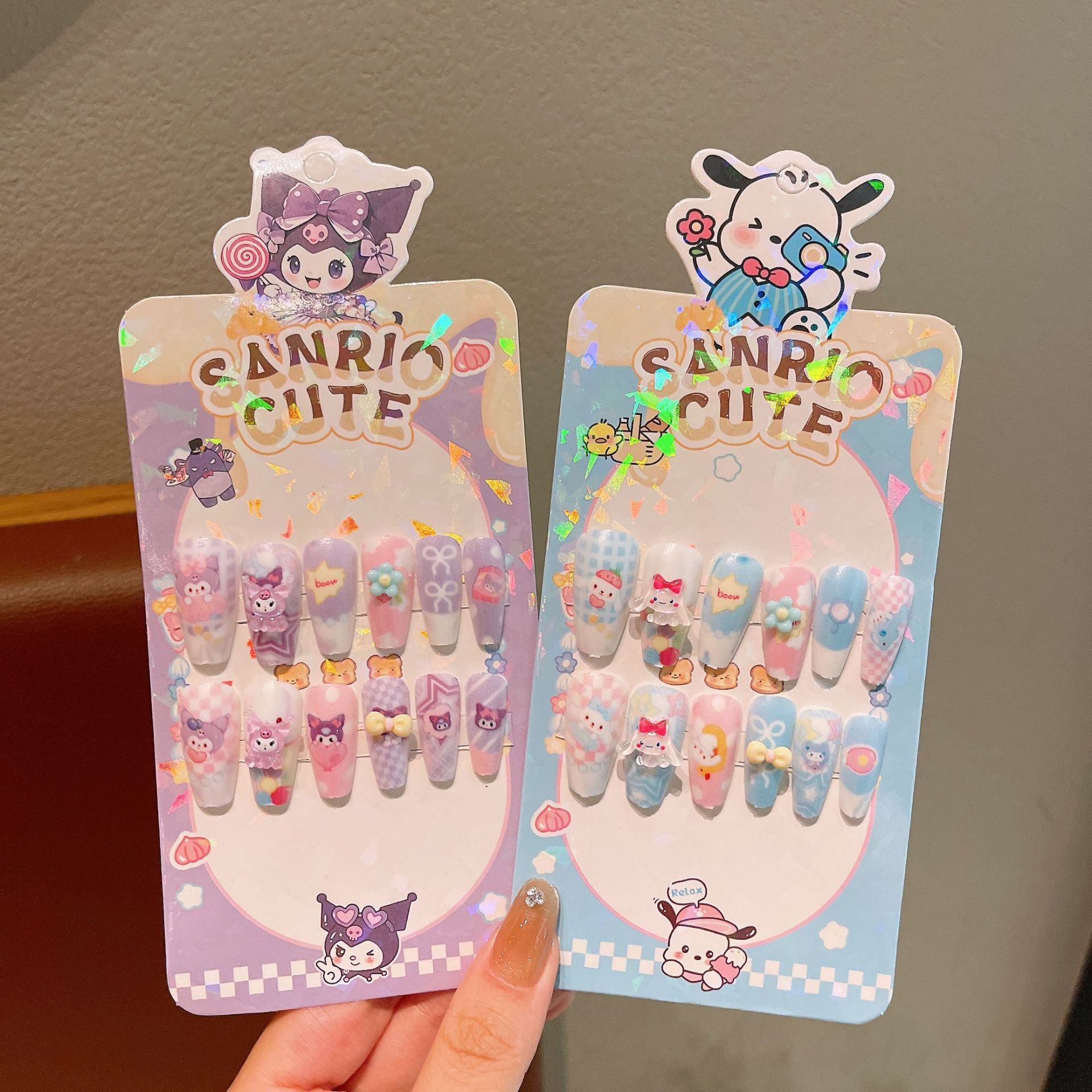 库洛米儿童美甲贴长款可拆卸穿戴甲片女童卡通指甲贴小公主贴纸