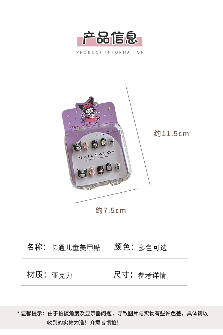 儿童穿戴甲2025新款高级感短款库洛米美甲贴指甲贴无毒无味女孩