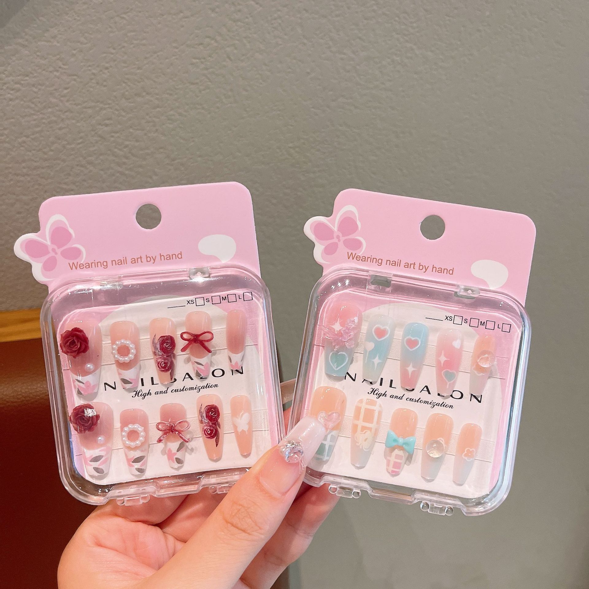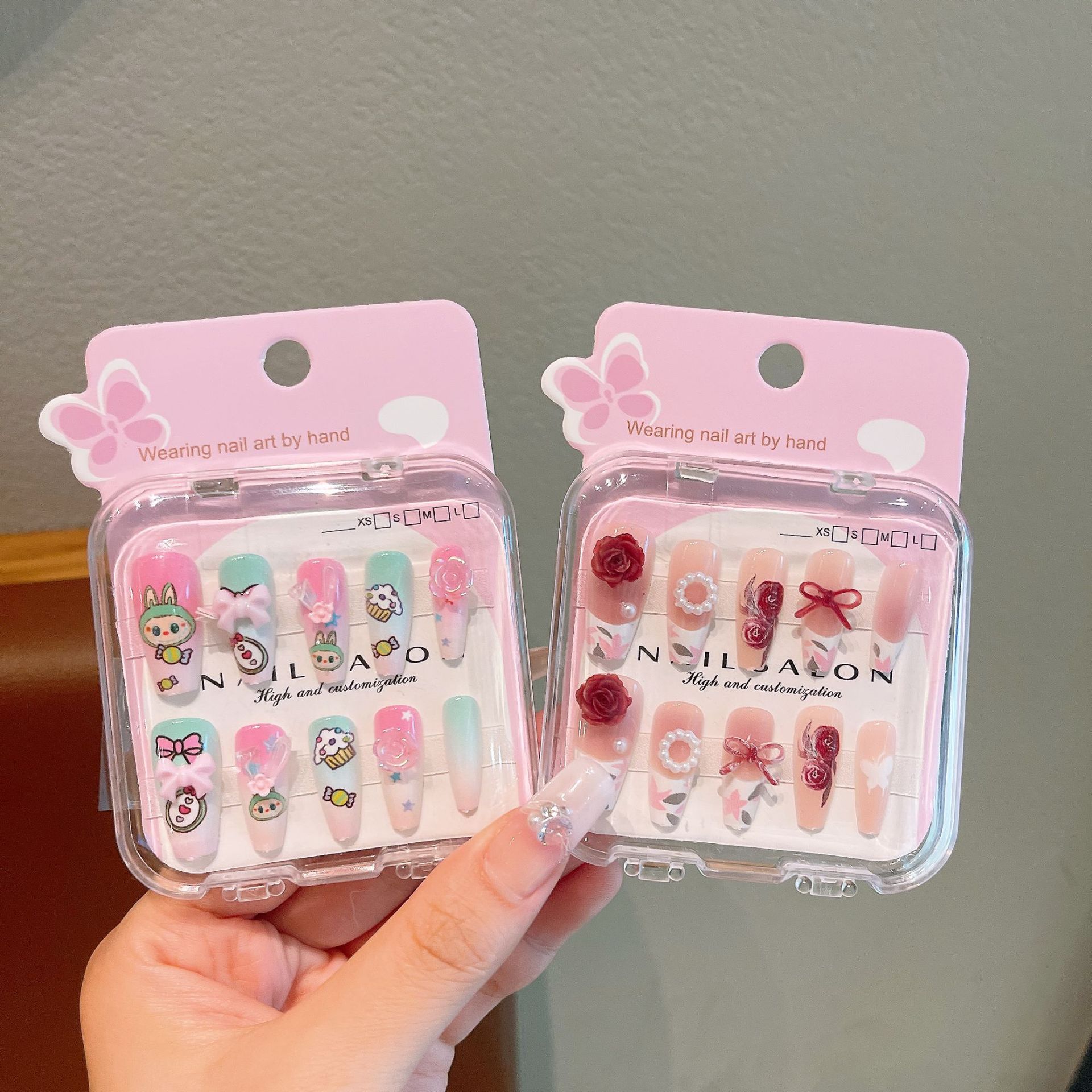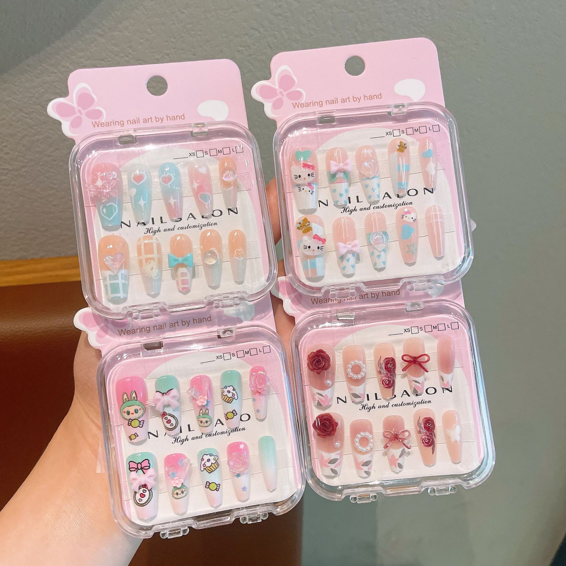 F8524-4#樱桃草莓长款穿戴甲10只装