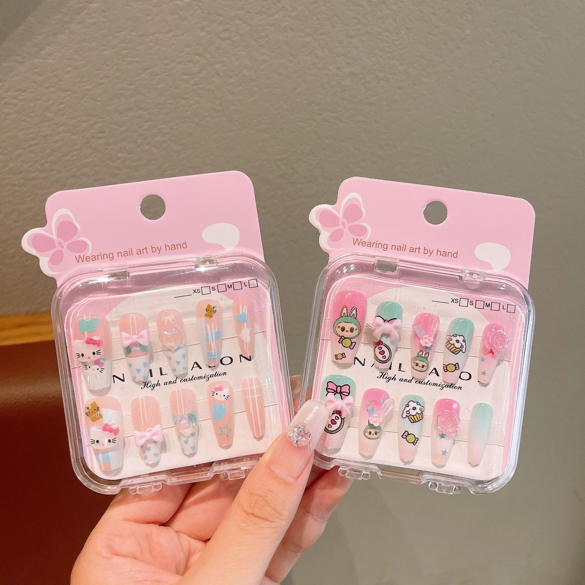 指甲贴儿童穿戴甲自粘假指甲可爱美甲贴片装饰印花可拆卸甲片