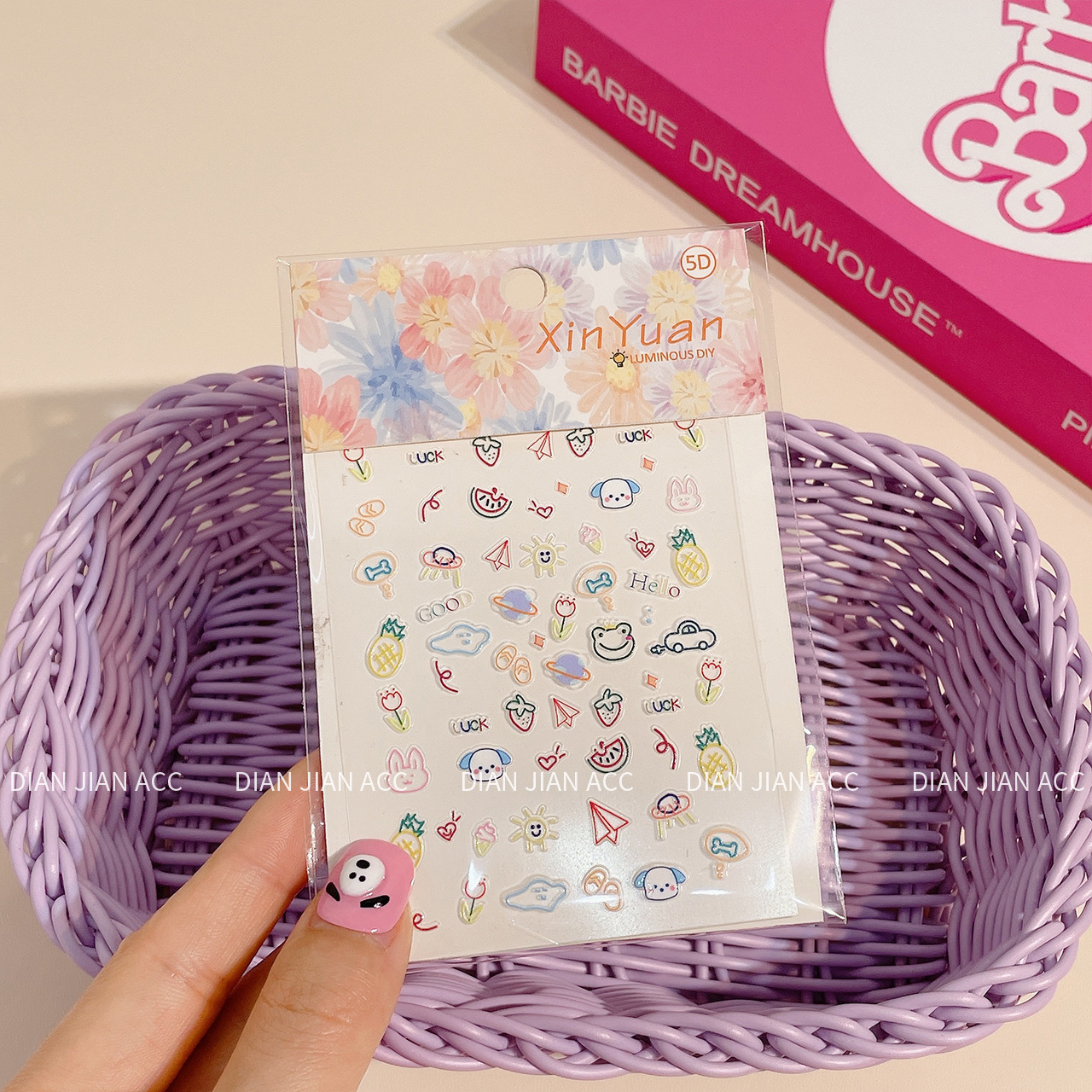 浮雕5D立体新款彩色儿童指甲贴女孩美甲贴纸可爱表情童趣涂鸦贴花