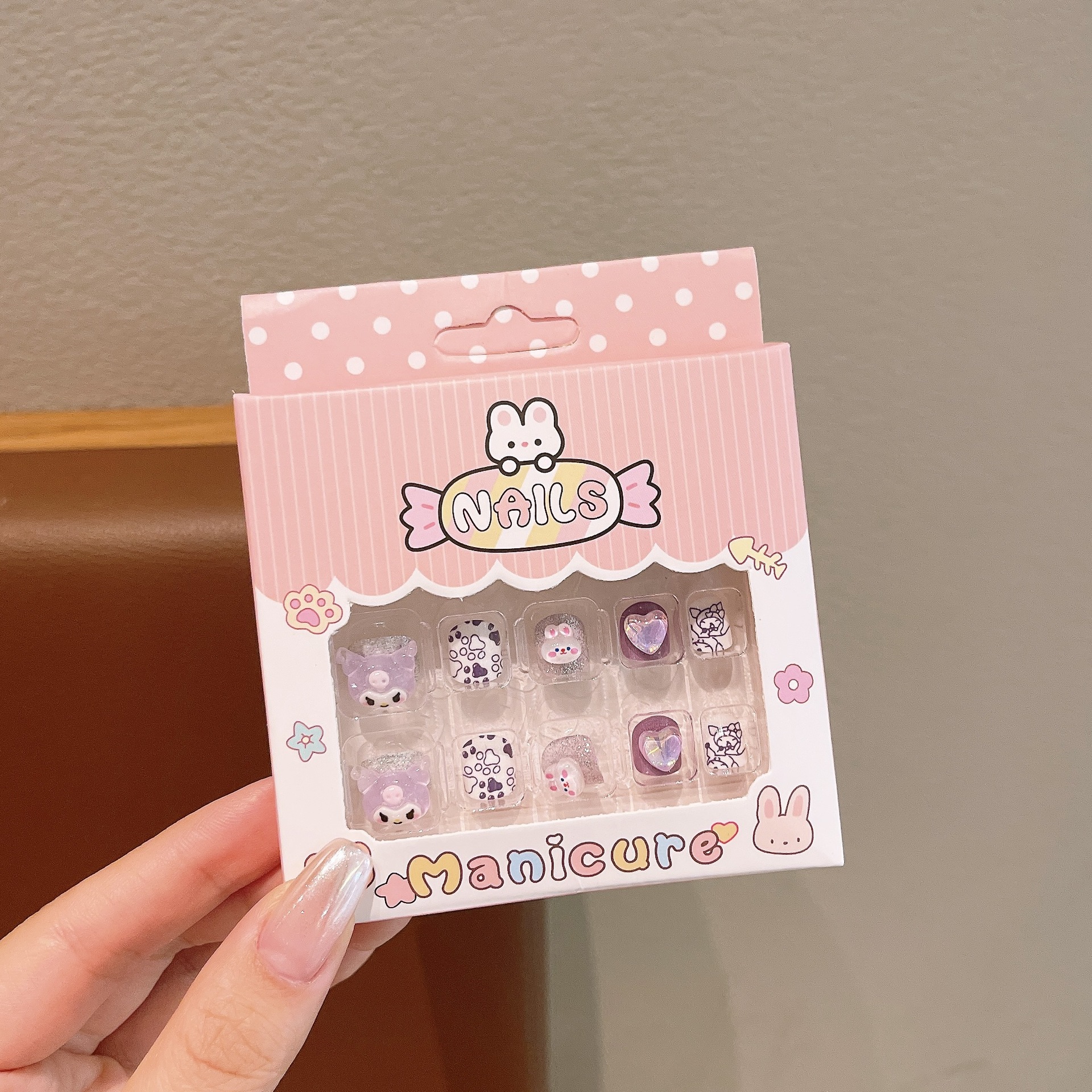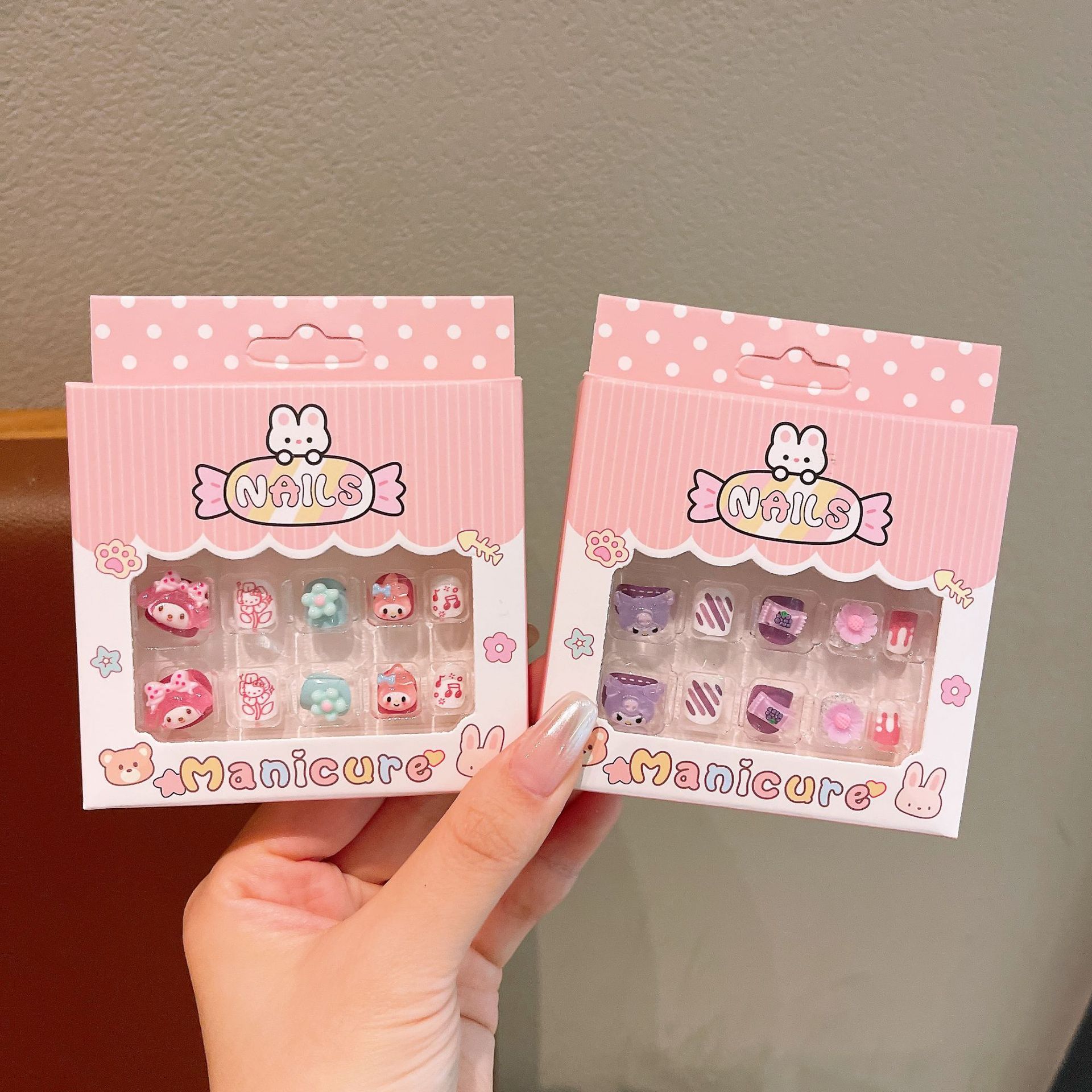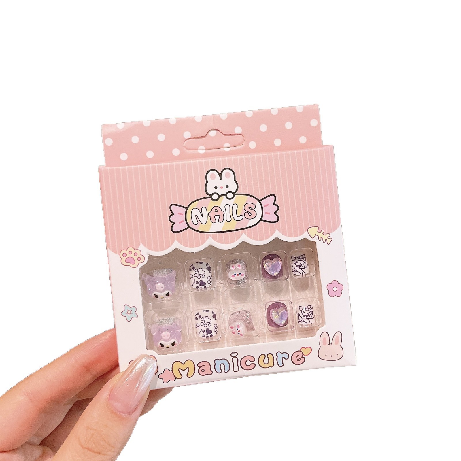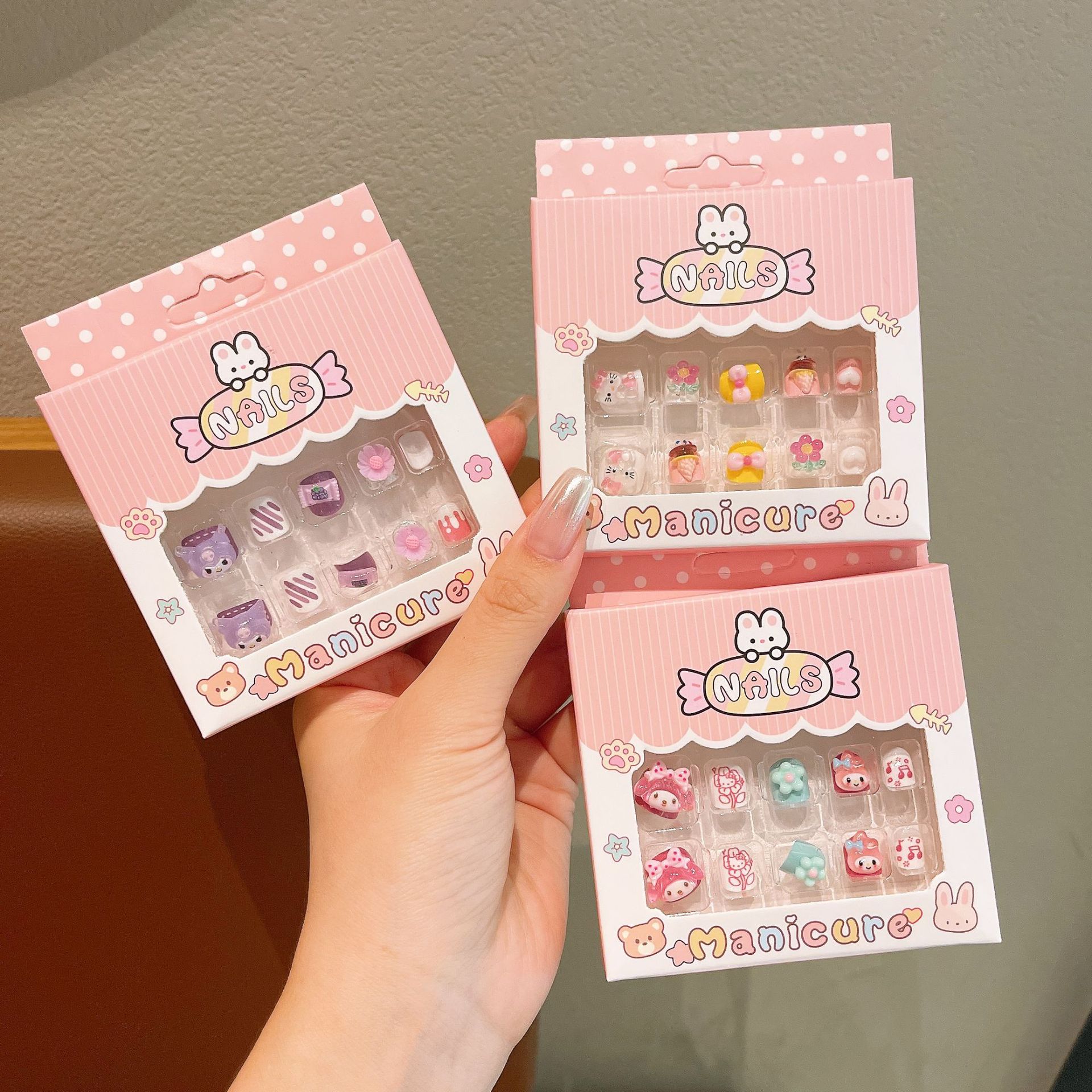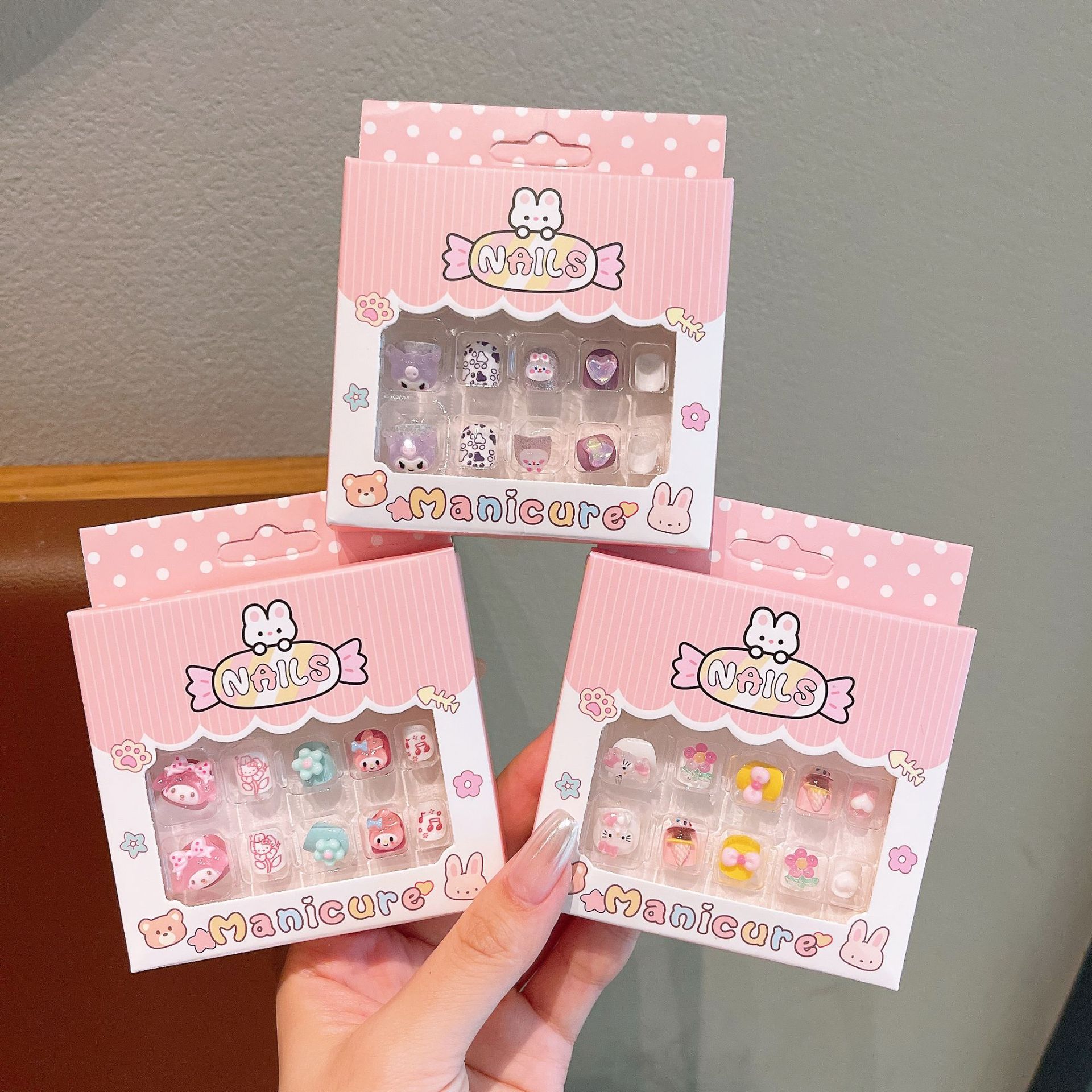 新款三丽鸥美甲贴儿童24片3D立体穿戴甲卡通库洛米不伤手美甲贴片