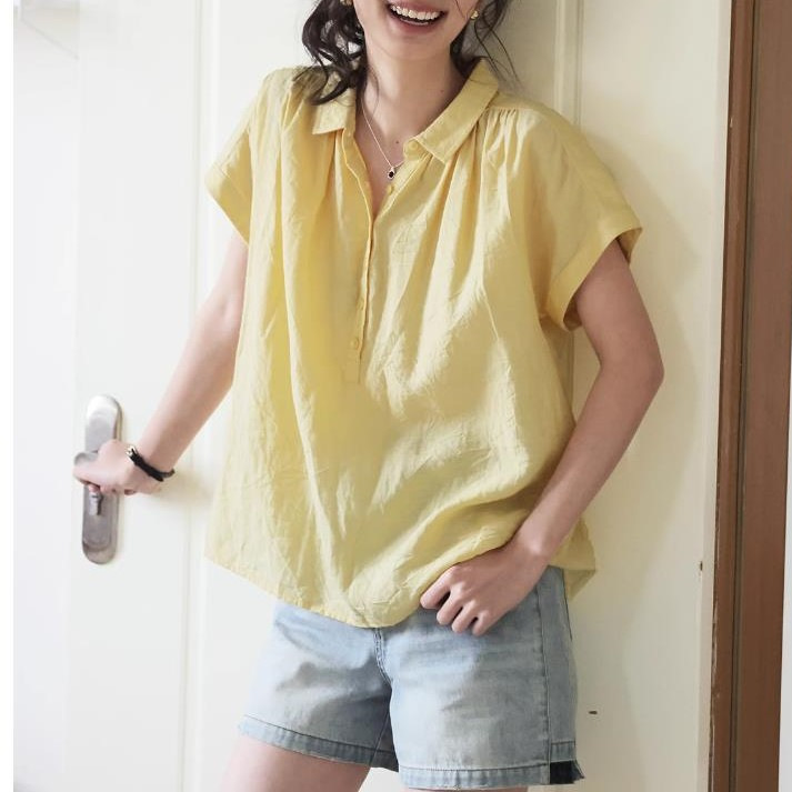 法式复古亚麻微透连袖衬衫女夏季新款宽松显瘦小众衬衣