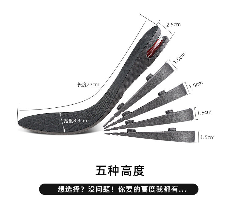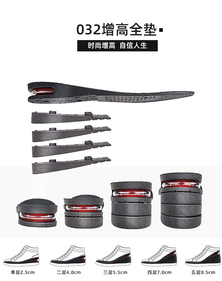 五层可调节增高鞋垫可拆式组合垫多层男女式隐形运动减震气全垫