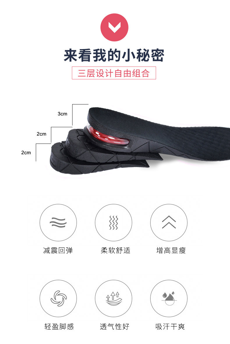 增高鞋垫男女式隐形运动透气气垫3cm5厘米全垫内增高