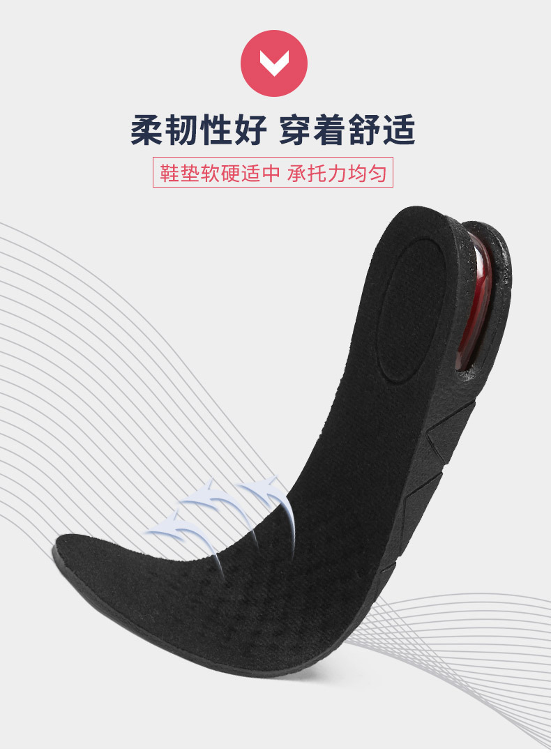 七分隐形增高鞋垫足弓支撑鞋垫男女通用增高垫排汗鞋垫扁平足鞋垫