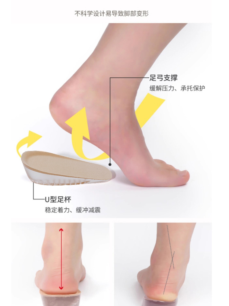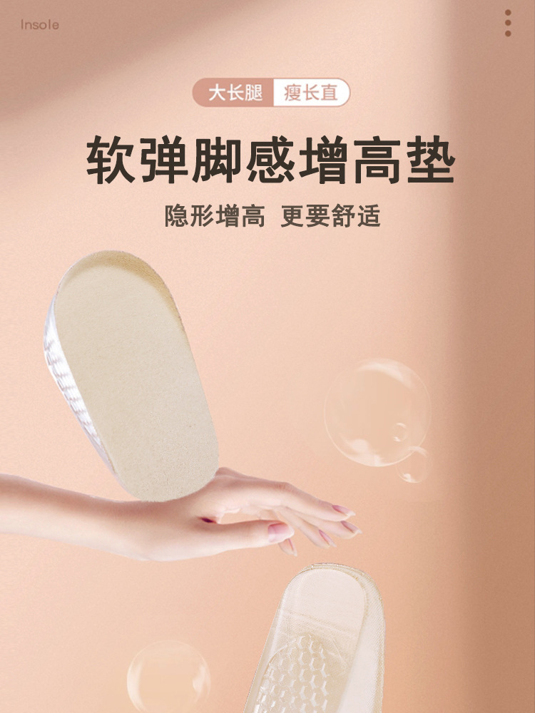 硅胶半码垫透气内增高垫pu鞋垫隐形增高后跟垫透气防臭增高垫鞋垫
