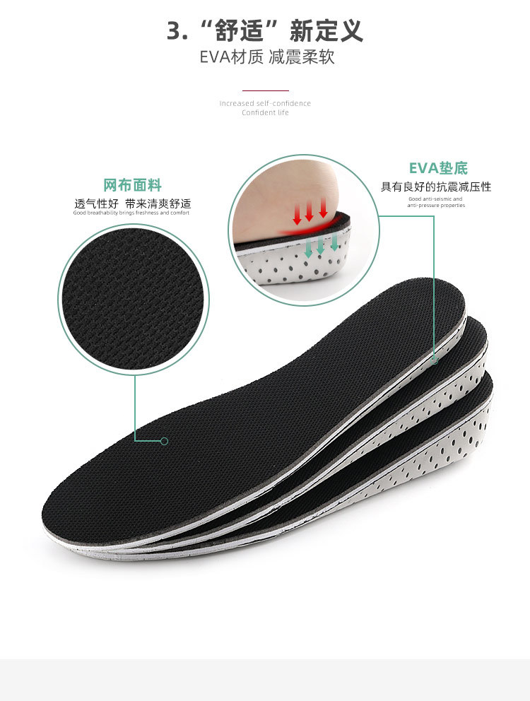 艾草舒适增高鞋垫男士隐形内增高垫女运动减震高弹软底防臭透气夏
