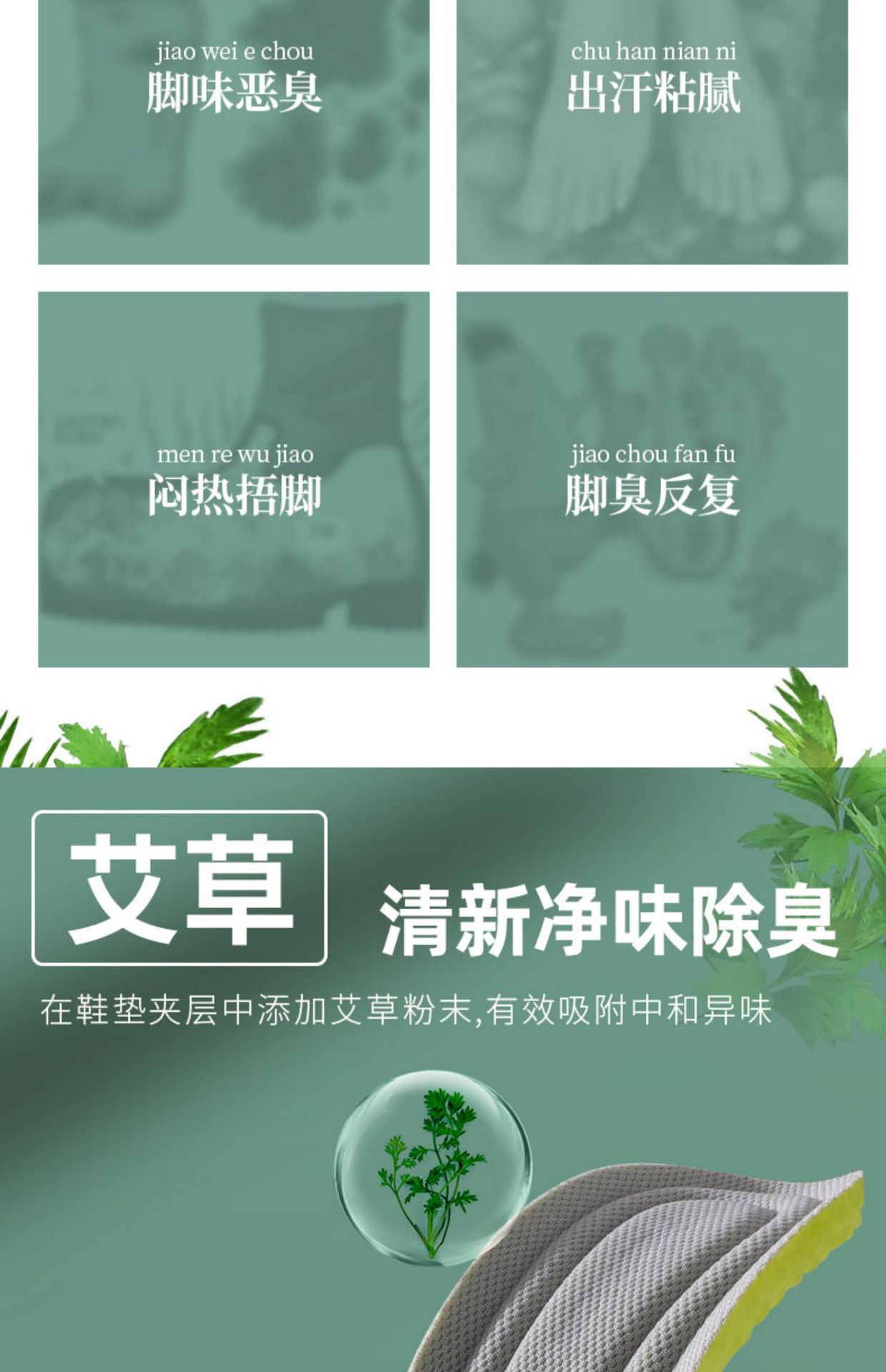 踩屎感艾草除臭鞋垫男女士超软运动气垫减震久站不累防脚痛鞋垫子