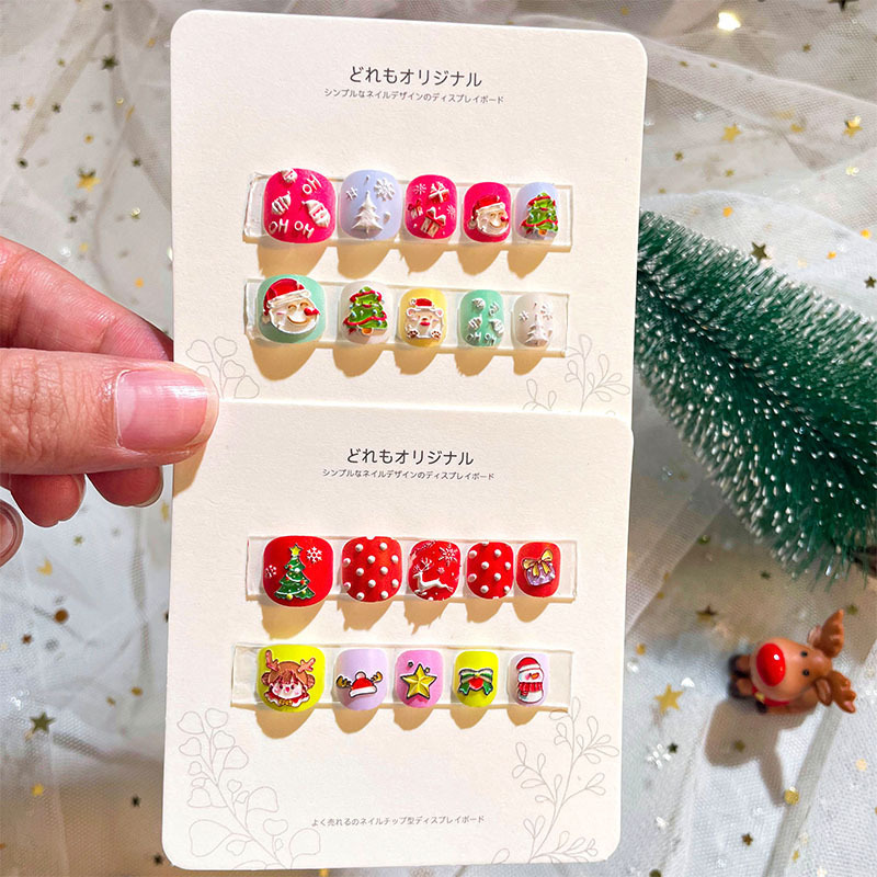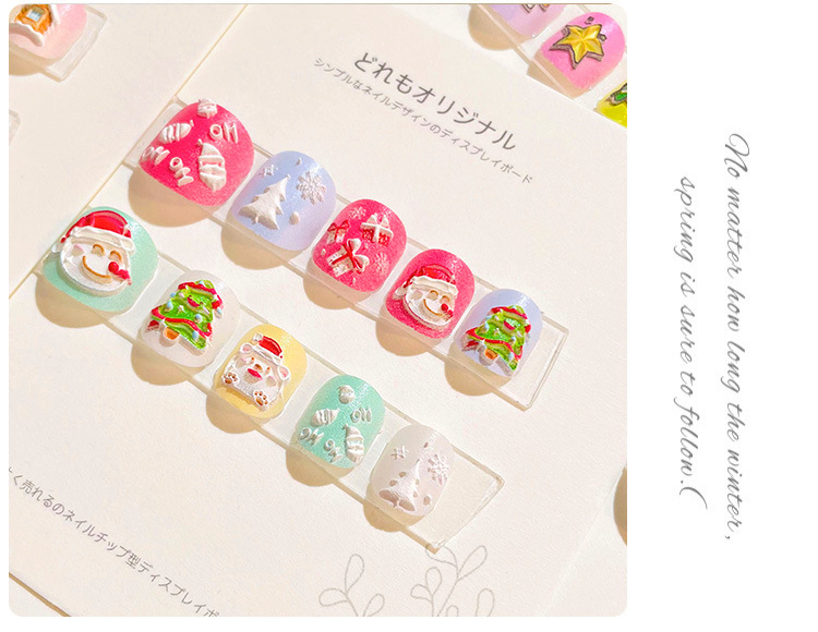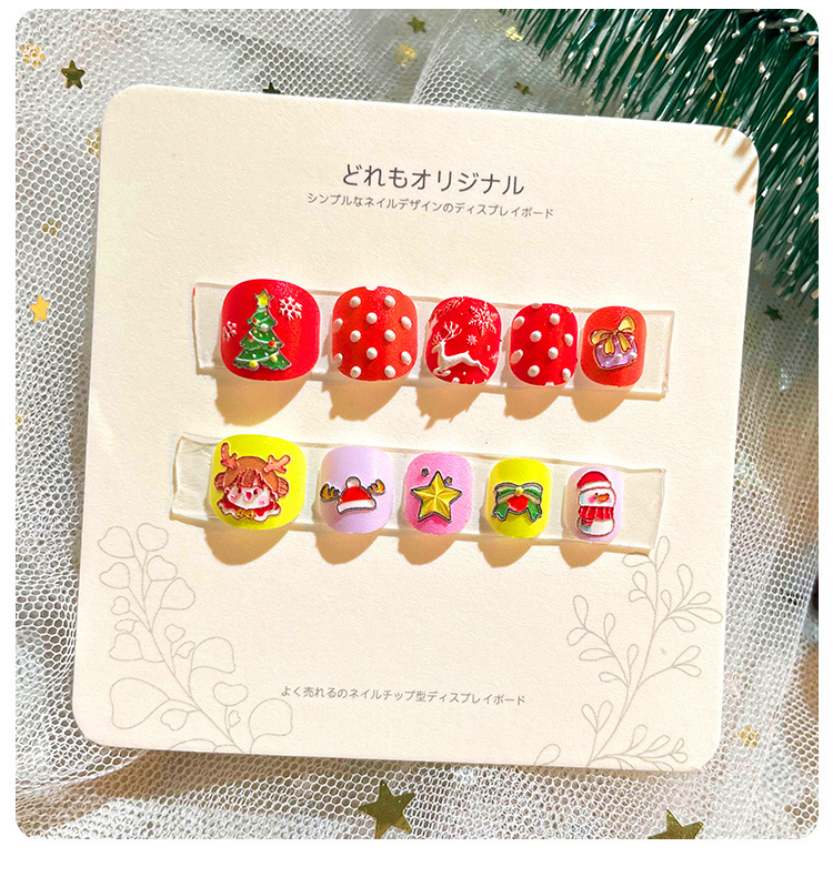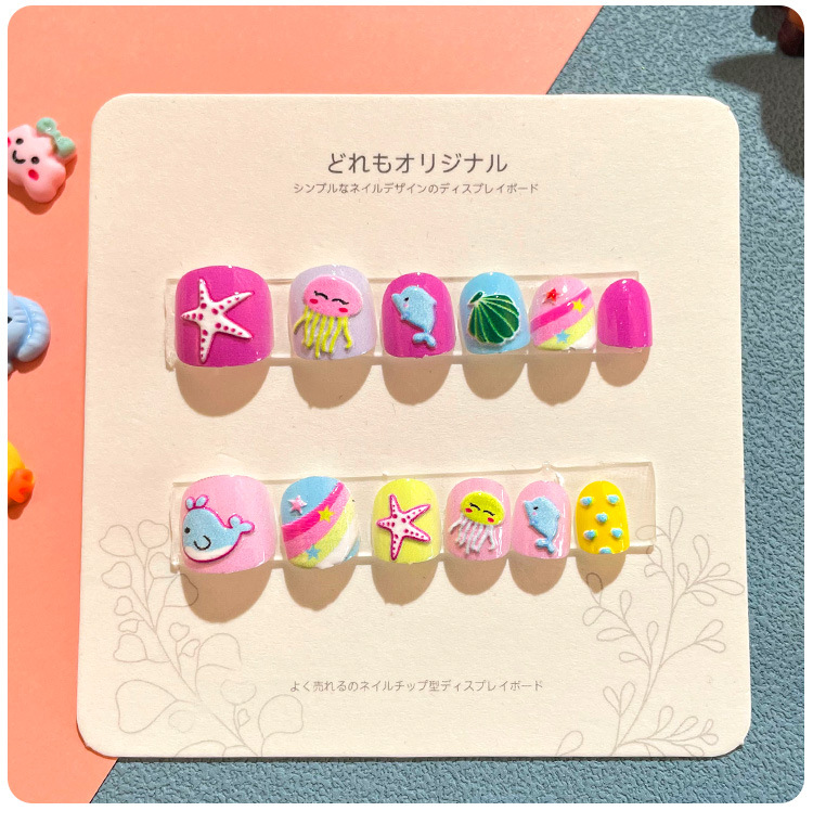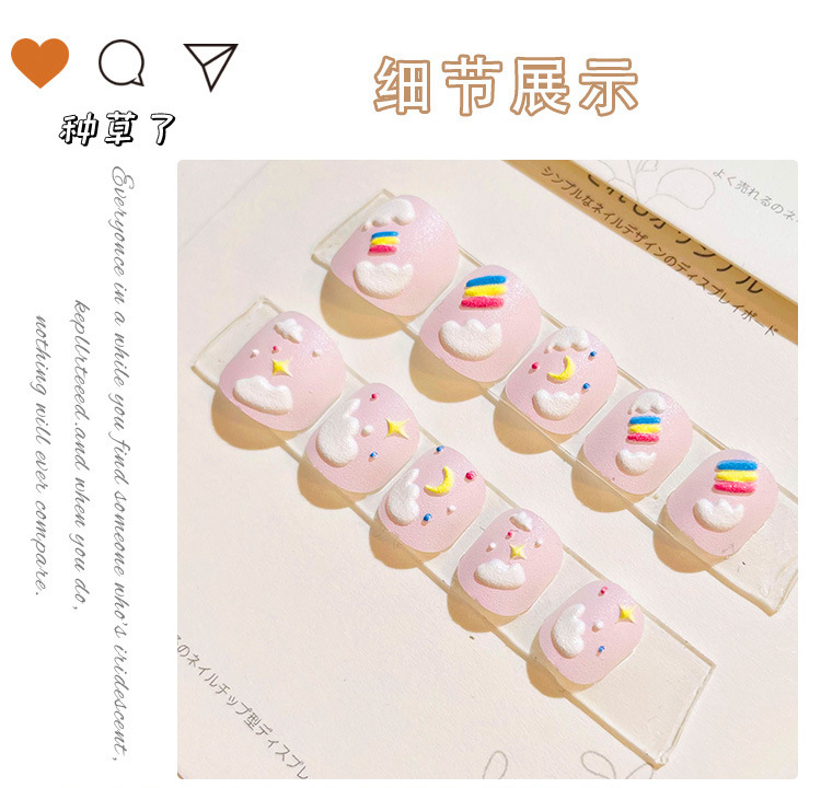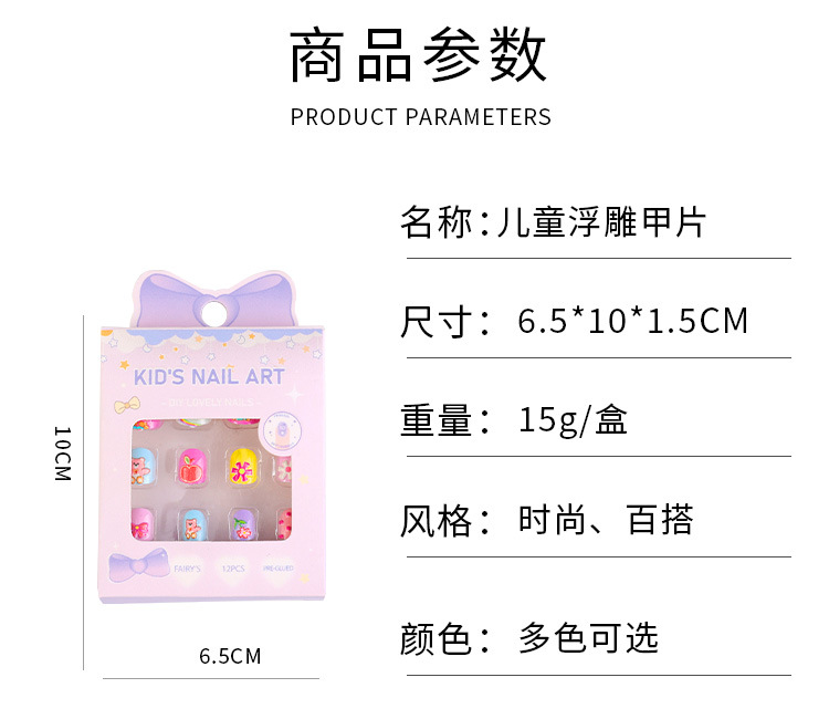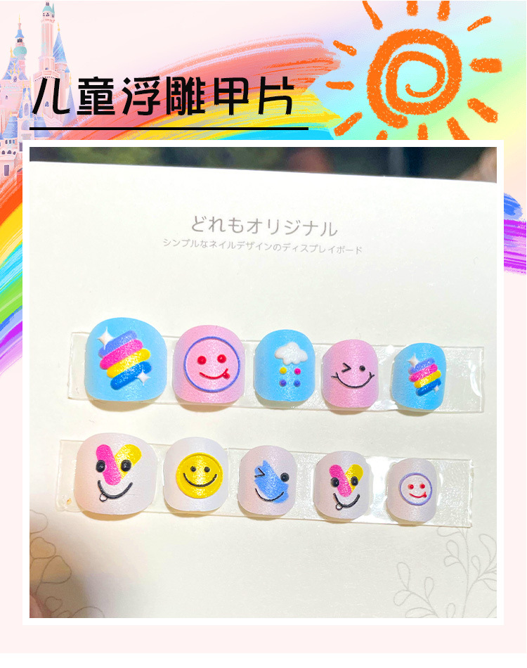 儿童指甲贴女孩穿戴甲自粘美甲贴卡通可爱公主假指甲片浮雕甲片