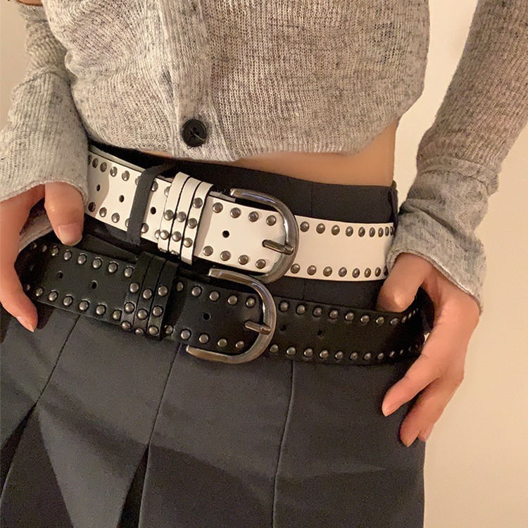 韩版港风复古纯色个性朋克风铆钉腰带女春夏个性百搭高级感皮带潮