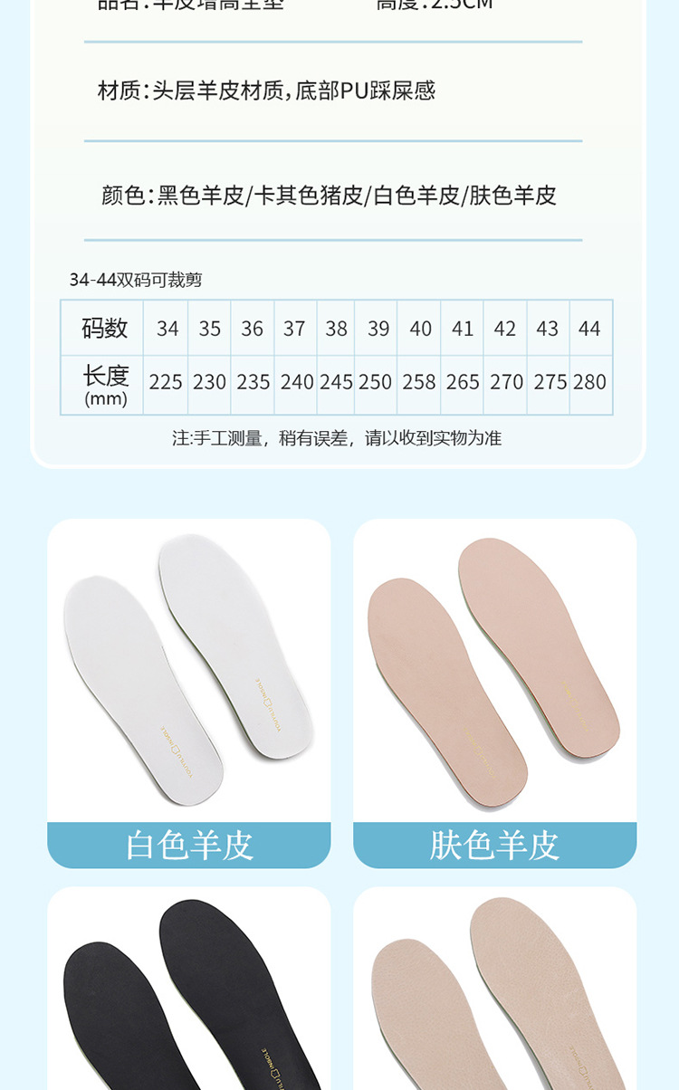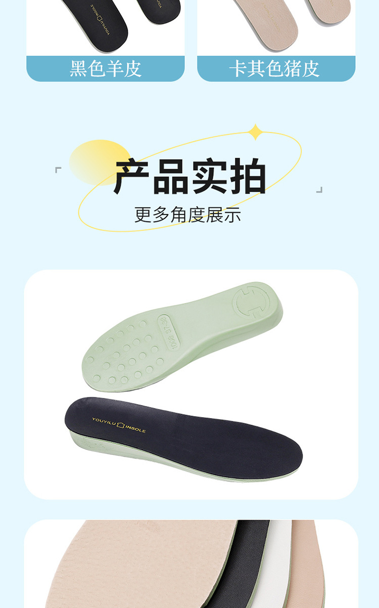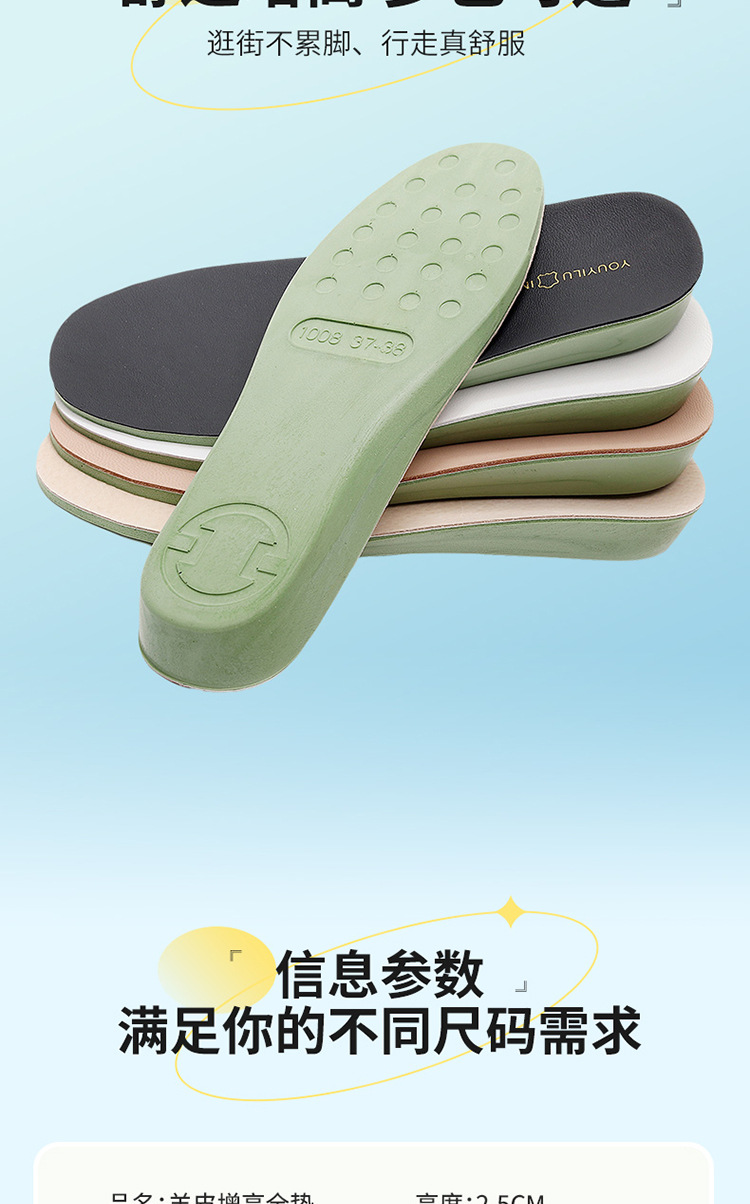 羊皮增高鞋垫男女款软底舒适增高透气加厚鞋垫运动减震羊皮增高垫