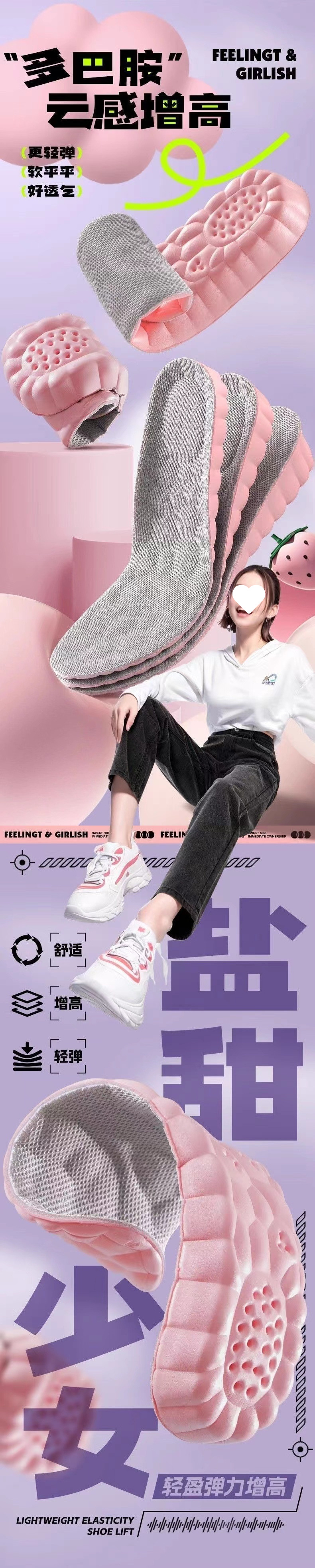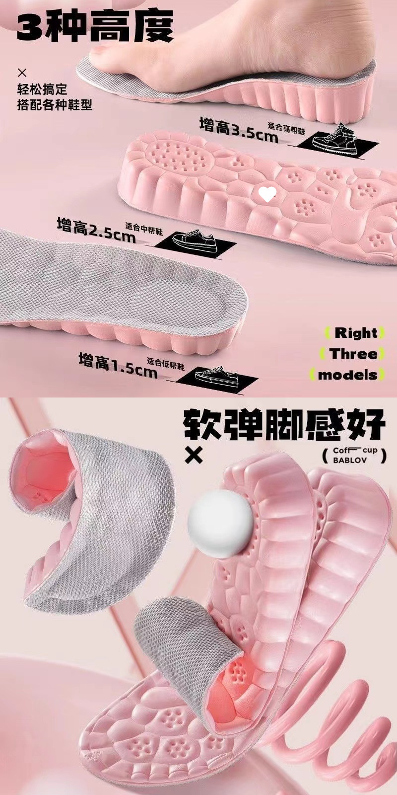 增高鞋垫女士不累脚隐形内吸汗防臭运动减震马丁靴神器多款鞋垫