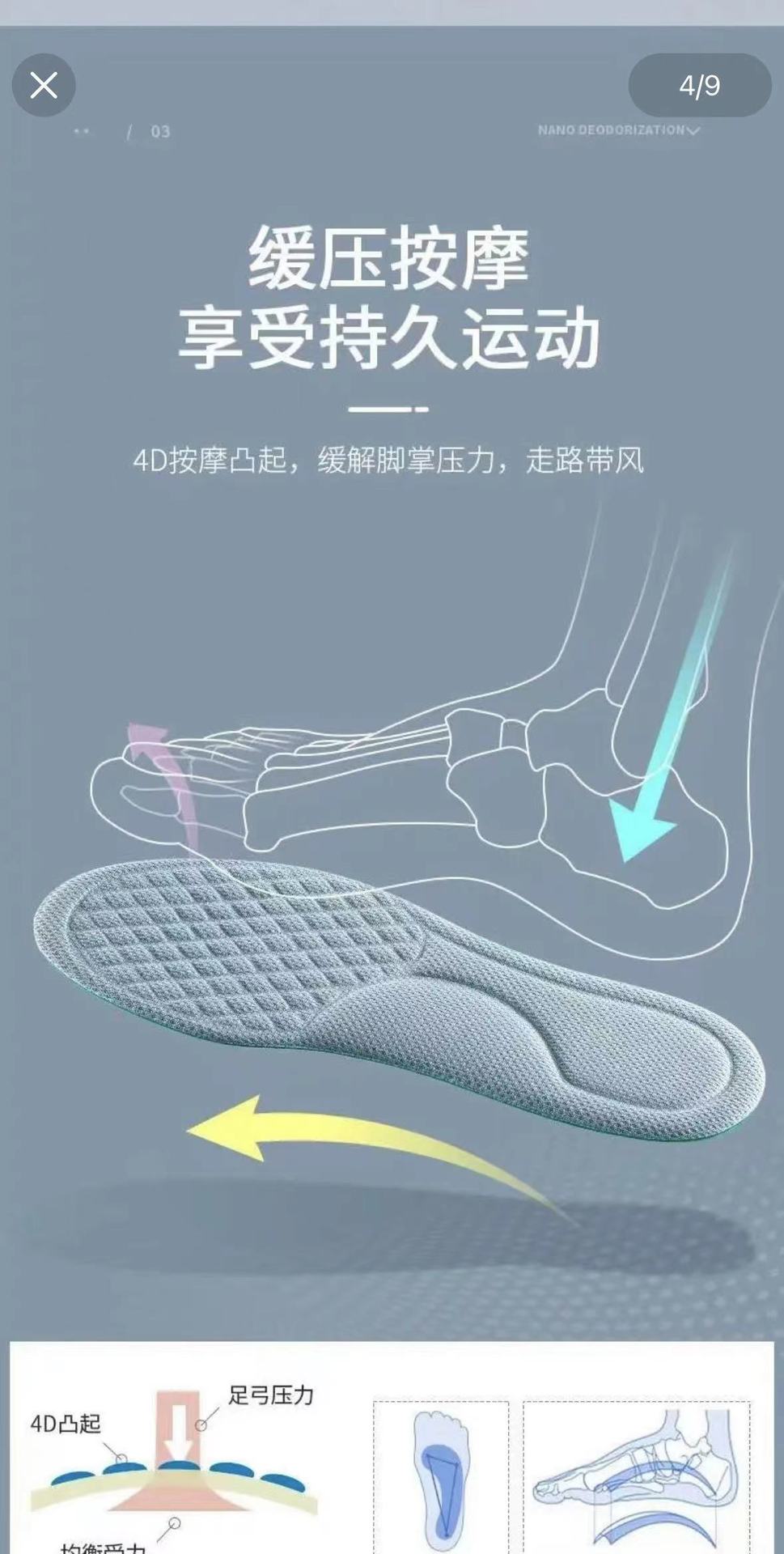 pu踩屎感鞋垫男女超软久站不累运动高弹缓震吸汗防臭透气除臭留香