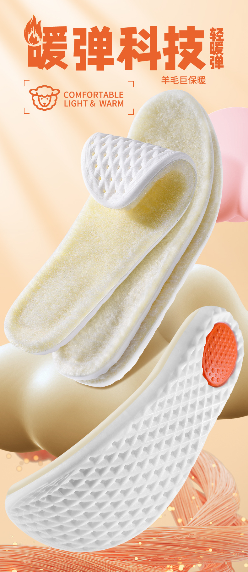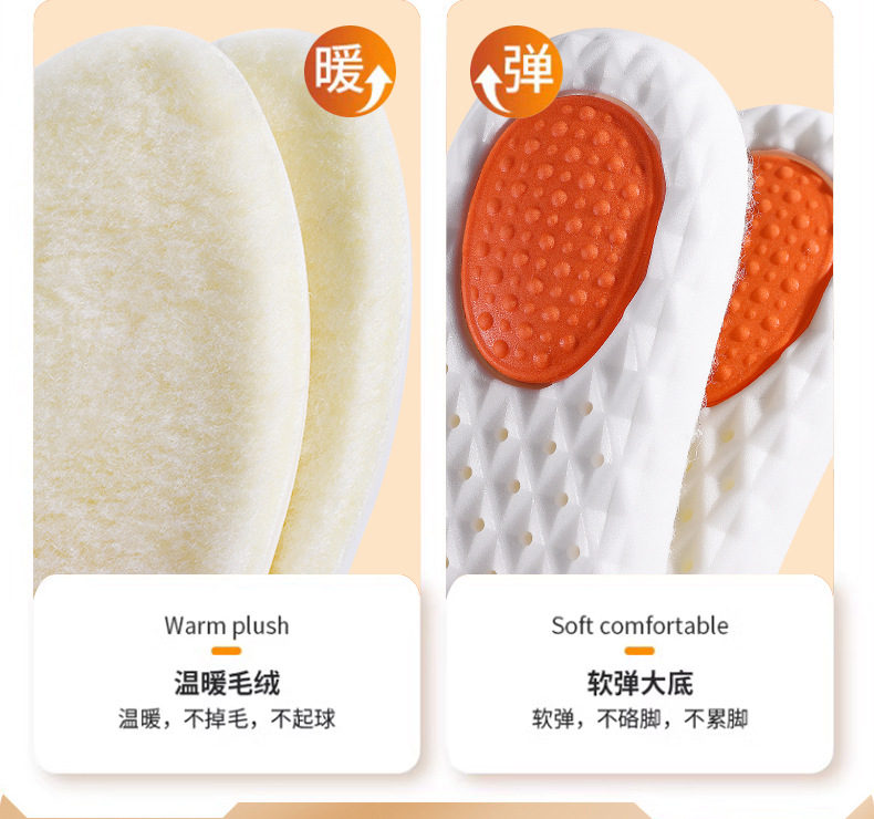 羊毛垫片减震保暖鞋垫男女冬加绒加厚透气吸汗防臭超软防痛踩屎感