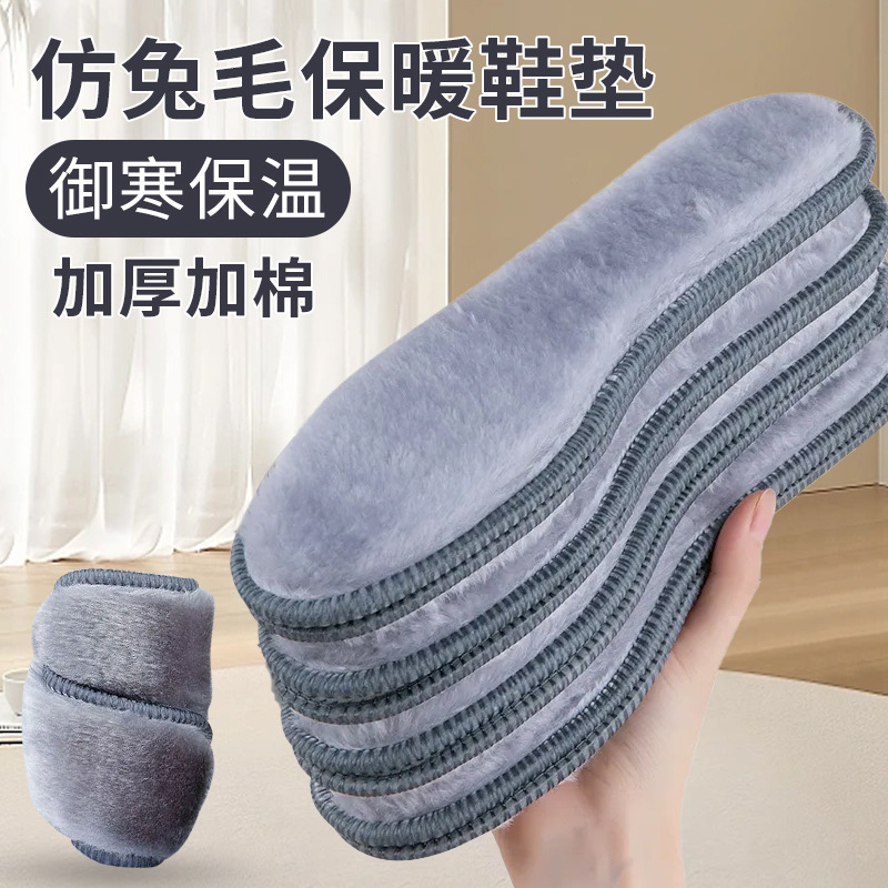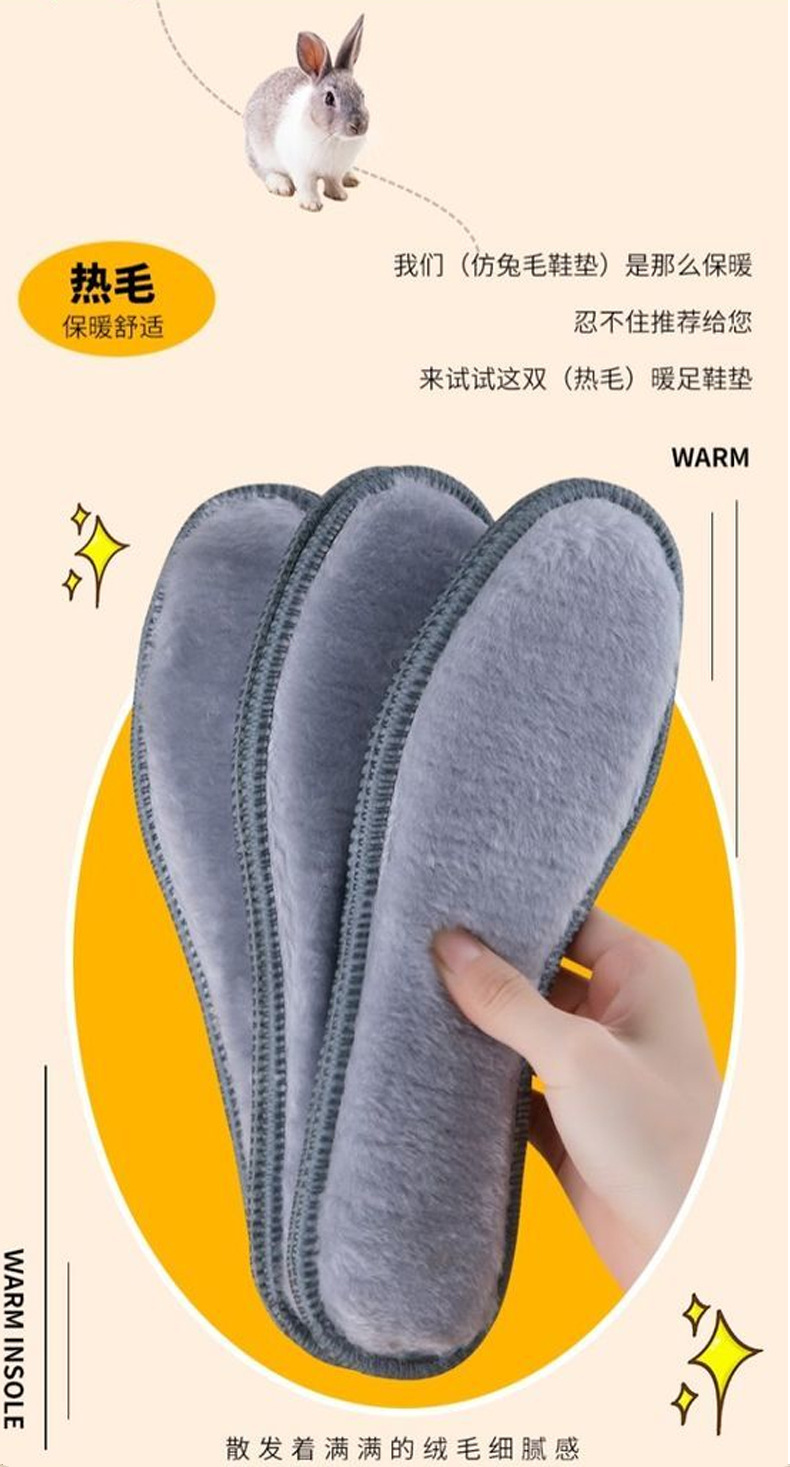 仿兔毛加绒鞋垫冬季保暖加厚防寒暖脚鞋垫软底吸汗透气防臭棉鞋垫