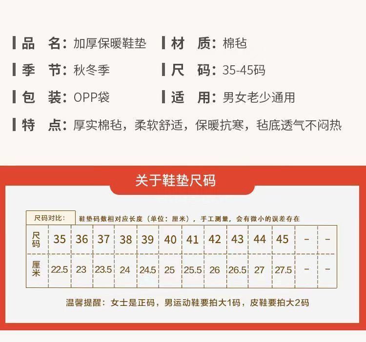 鞋垫冬天加绒加厚保暖鞋垫柔软舒适透气吸汗男女冬季毛毡棉鞋垫