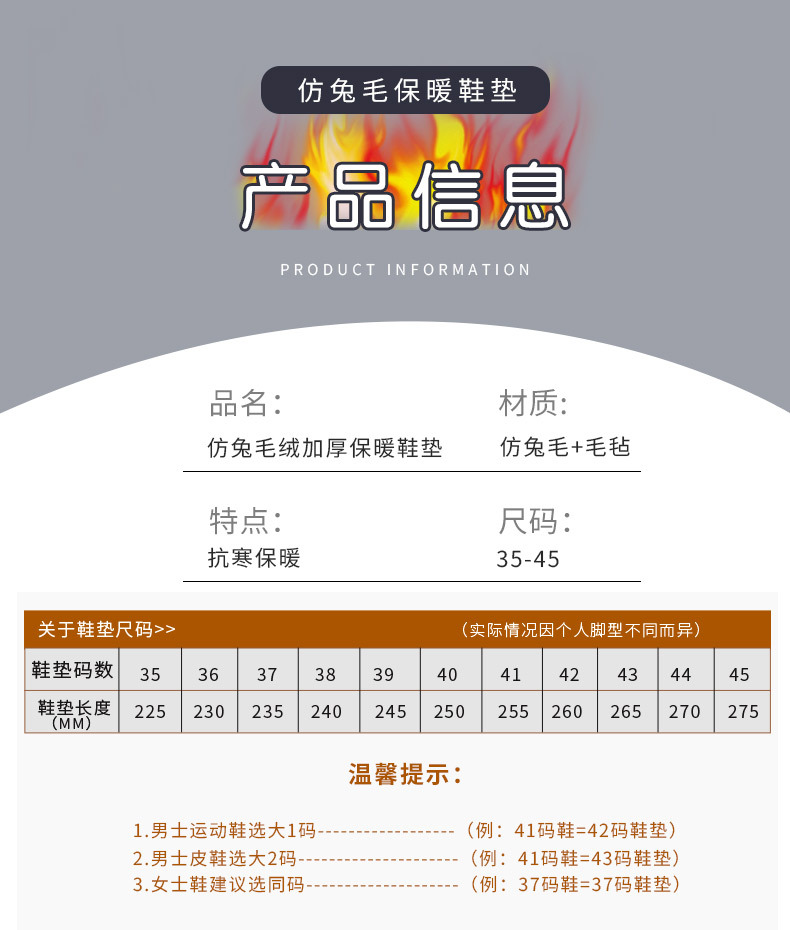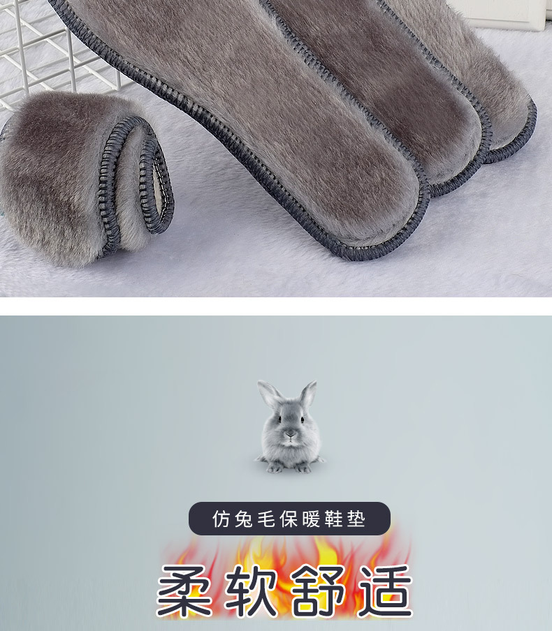 冬季加绒鞋垫加厚保暖毛绒防寒保暖男女款防臭透气暖脚鞋垫