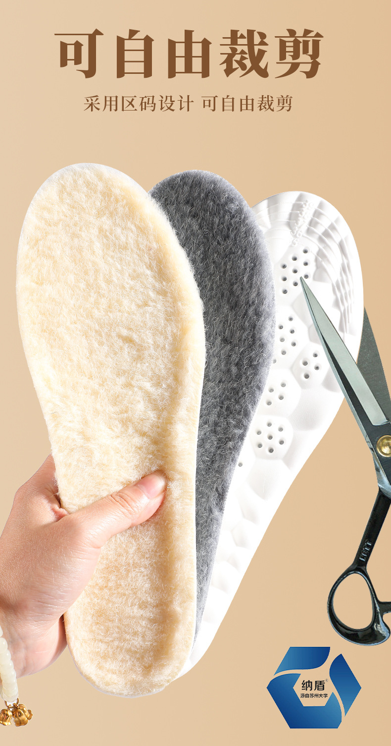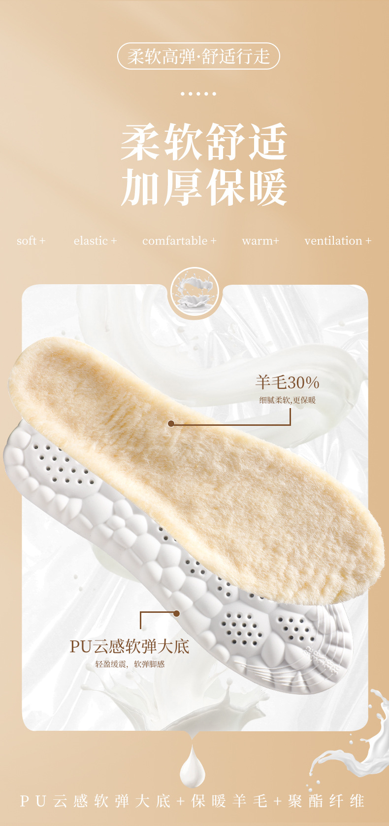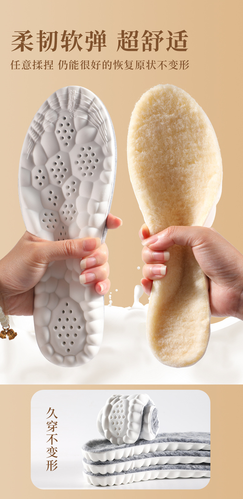 冬季羊毛鞋垫男女透气吸汗减震舒适软底加厚鞋垫踩屎感pu加绒鞋垫