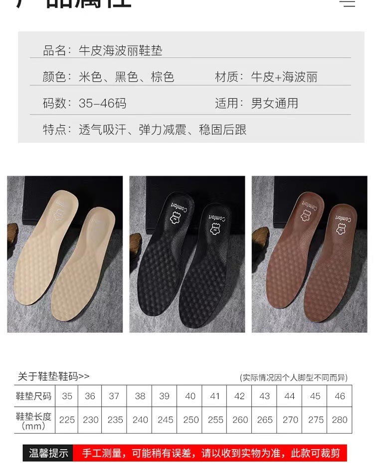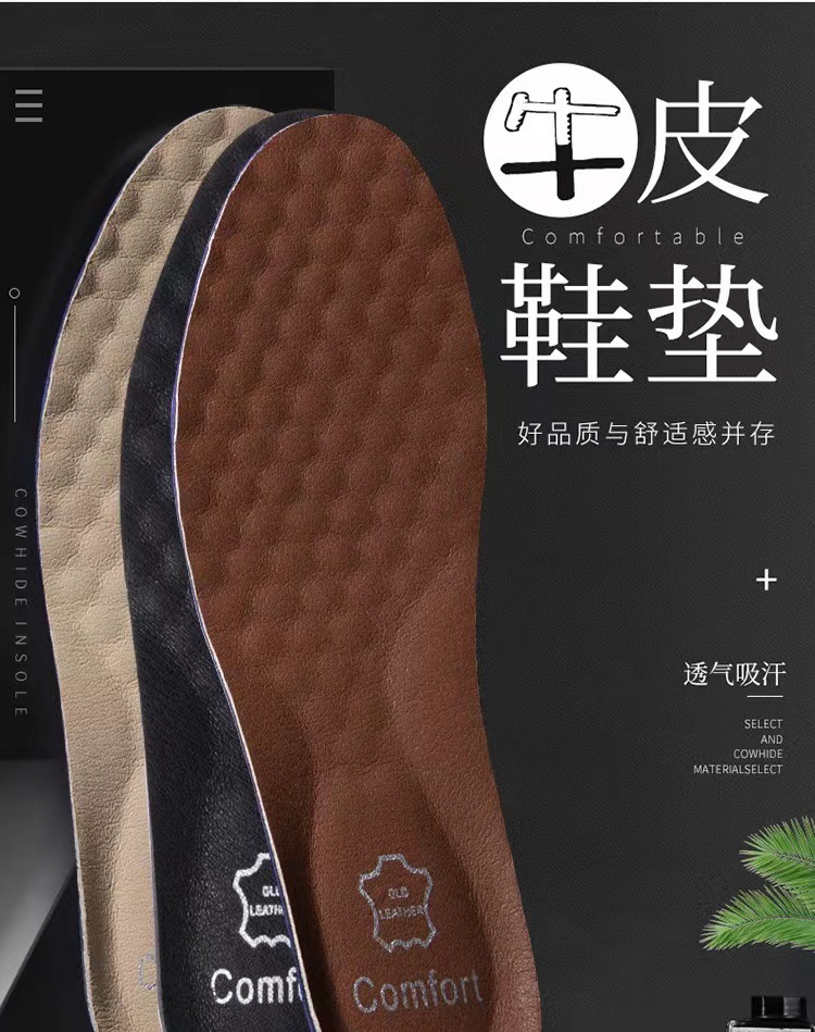 男士皮鞋鞋垫软夏吸汗真皮透气加厚减震牛皮革休闲鞋女工作鞋专用