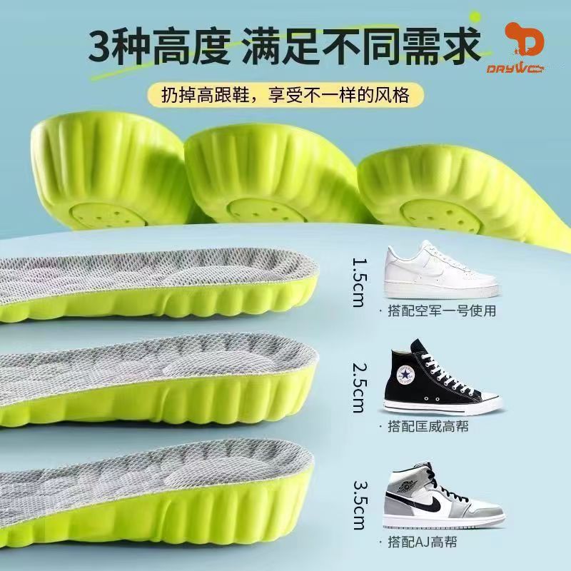 翀益艾草防臭弹性鞋垫男士不累脚隐形内增高女运动减震增高垫