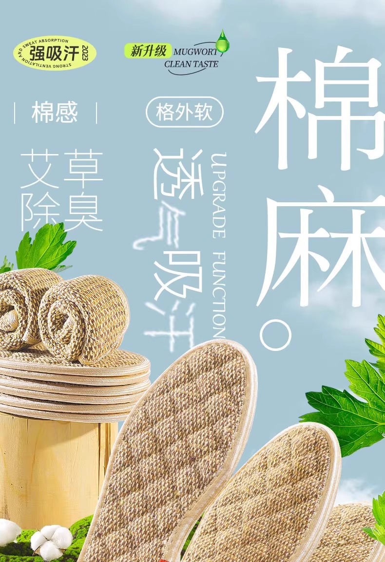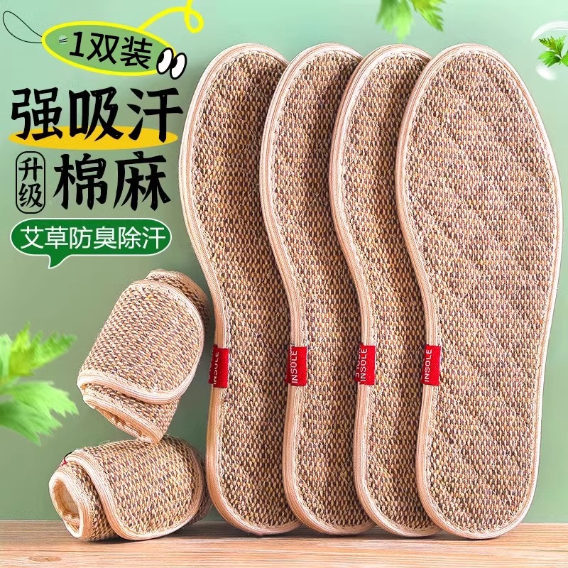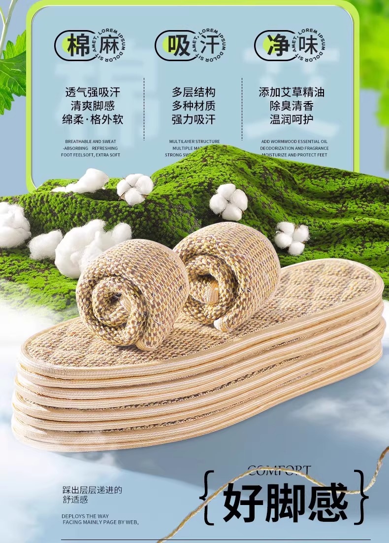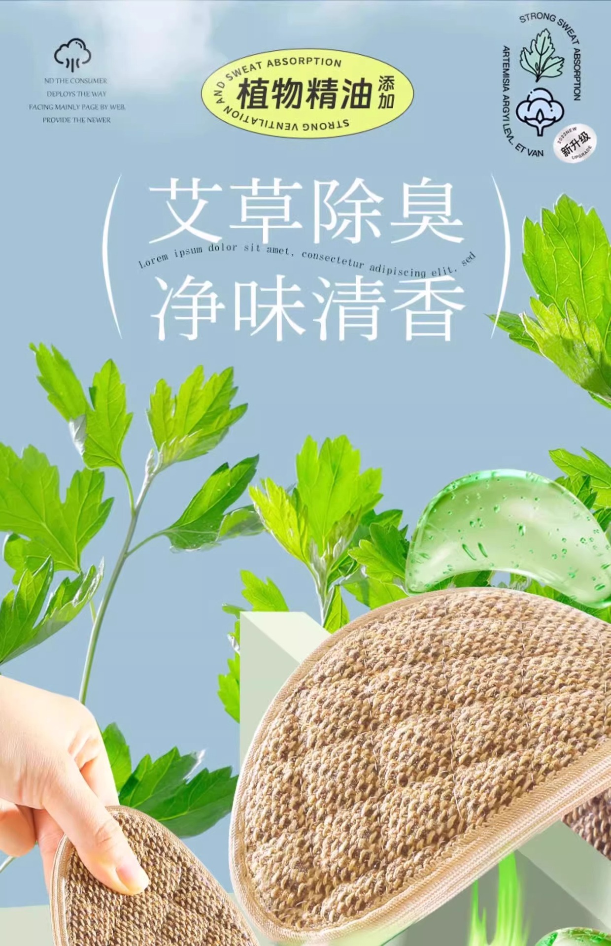 艾草棉麻防臭鞋垫男女士软底强吸汗透气除臭留香汗脚