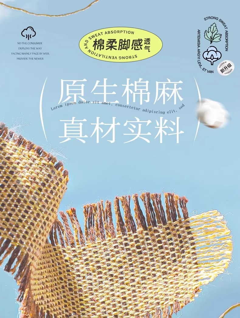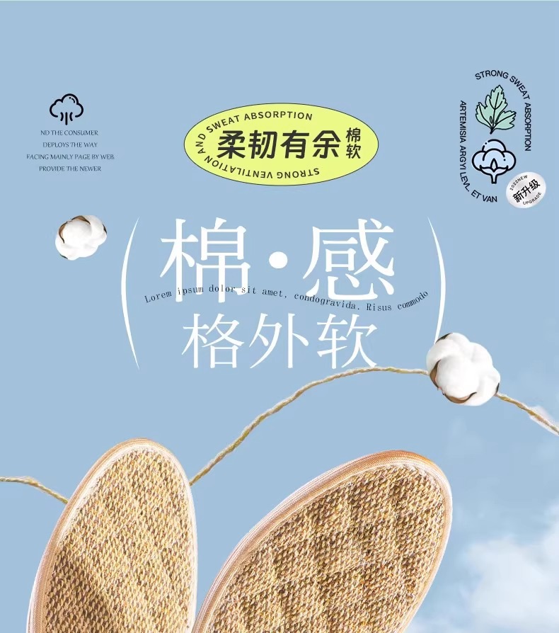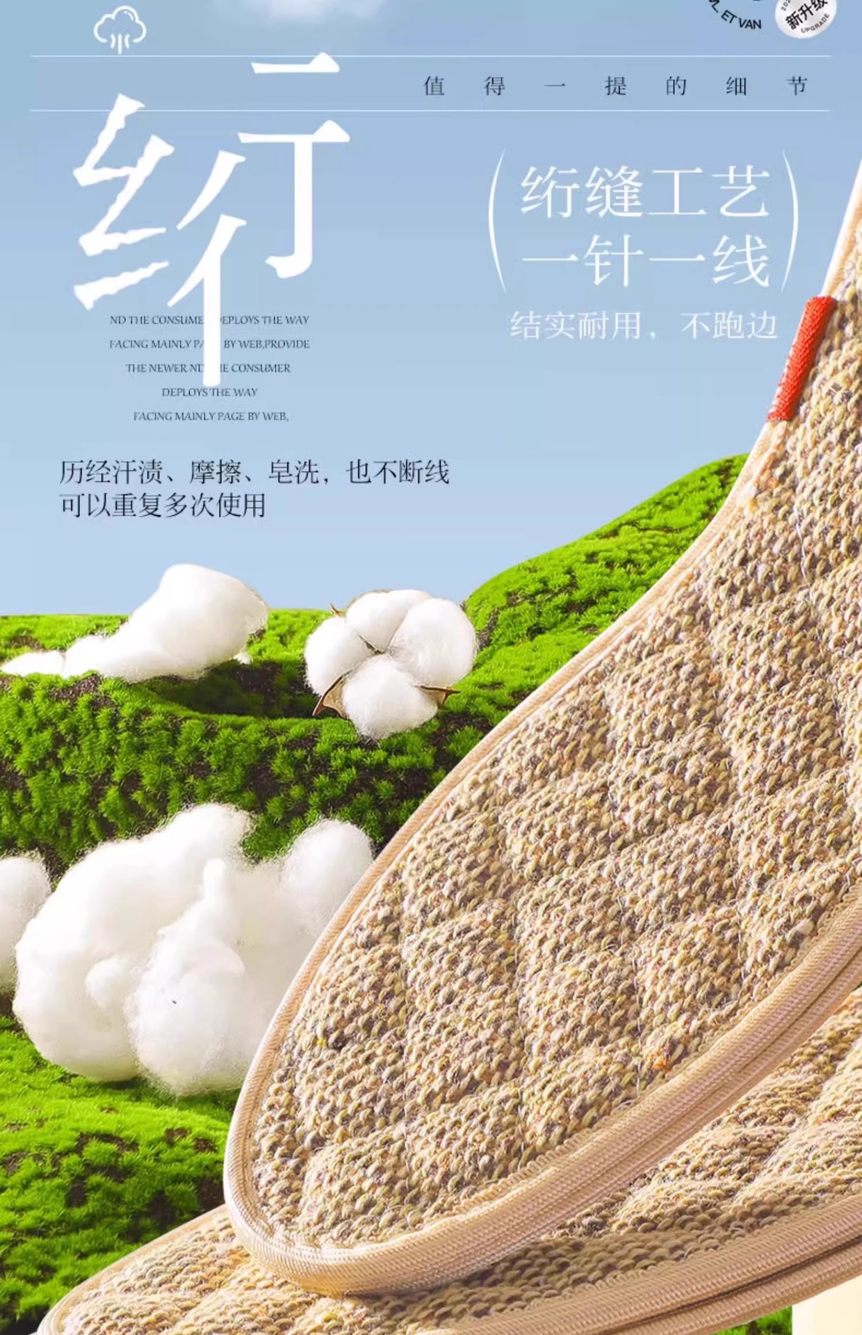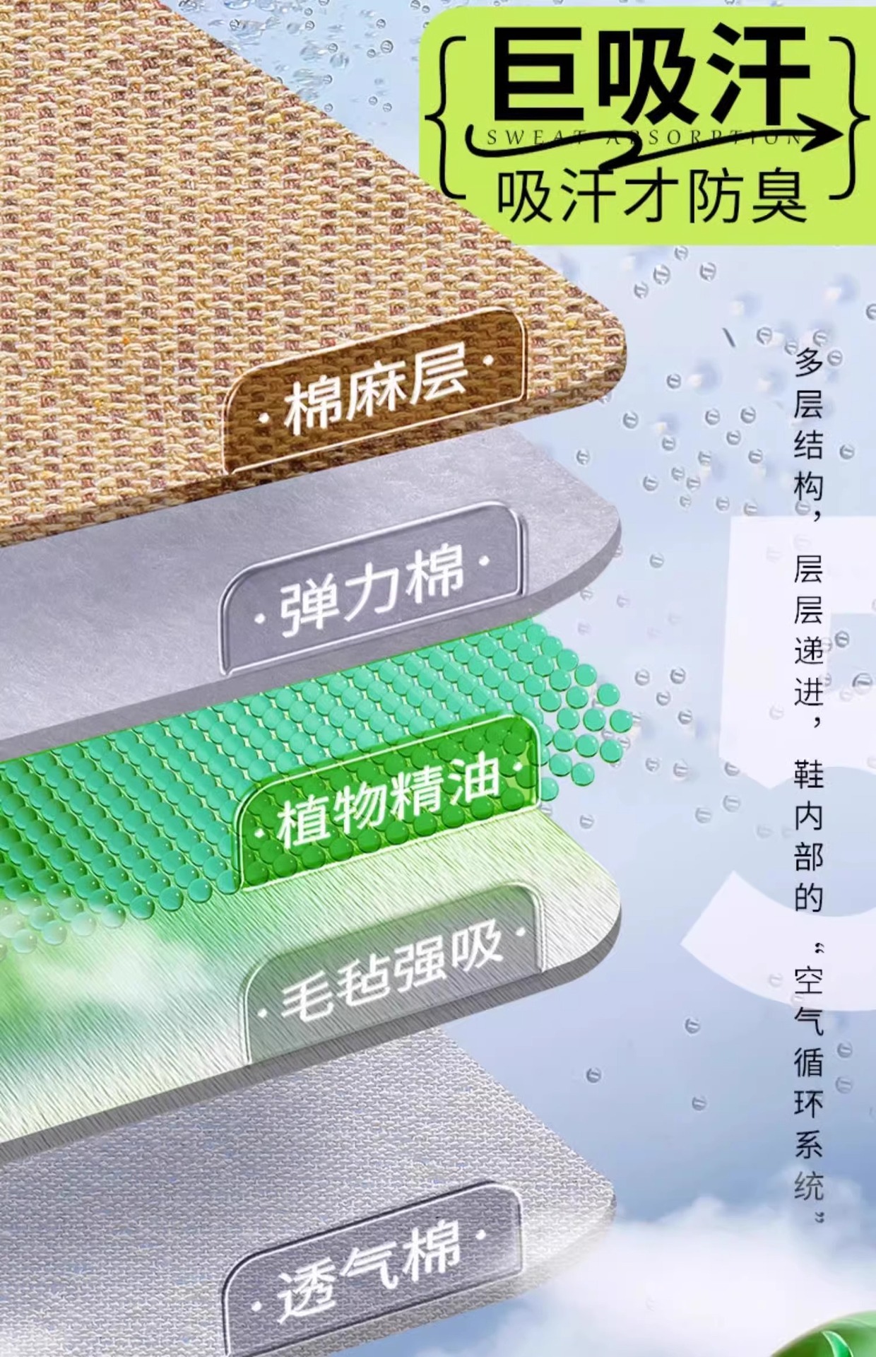 艾草棉麻防臭鞋垫男女士软底强吸汗透气除臭留香汗脚