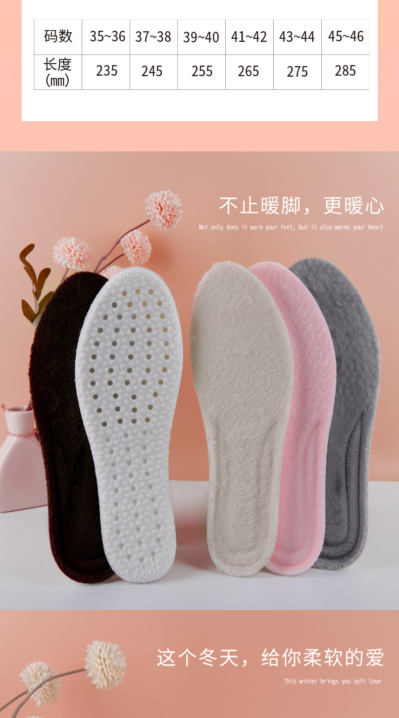 保暖鞋垫冬季加厚加绒鞋垫防臭透气吸汗皮毛一体柔软毛毡棉鞋垫