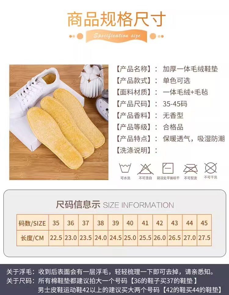 冬季加绒加厚吸汗保暖鞋垫不冻脚舒适透气仿羊毛棉毡鞋垫子