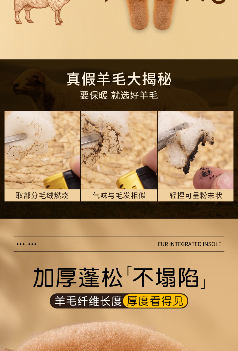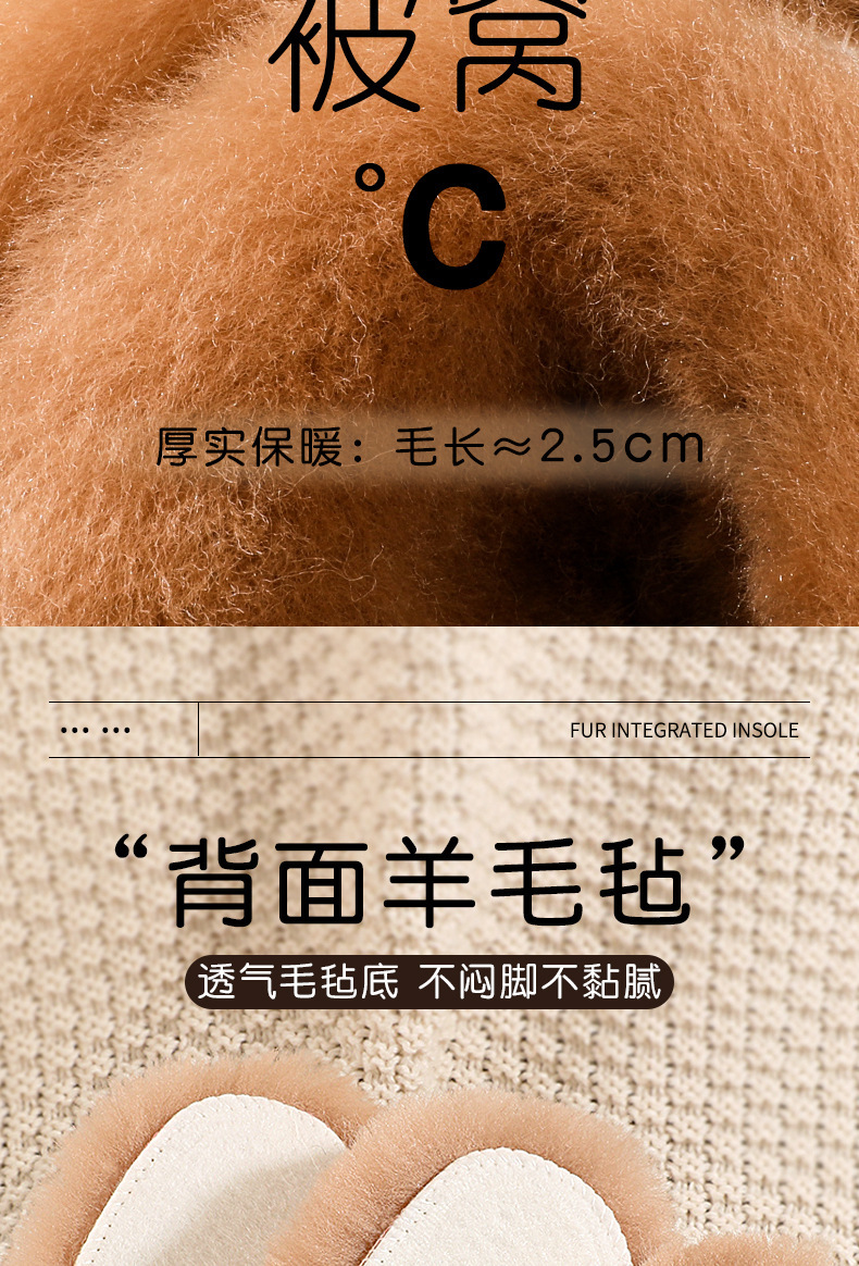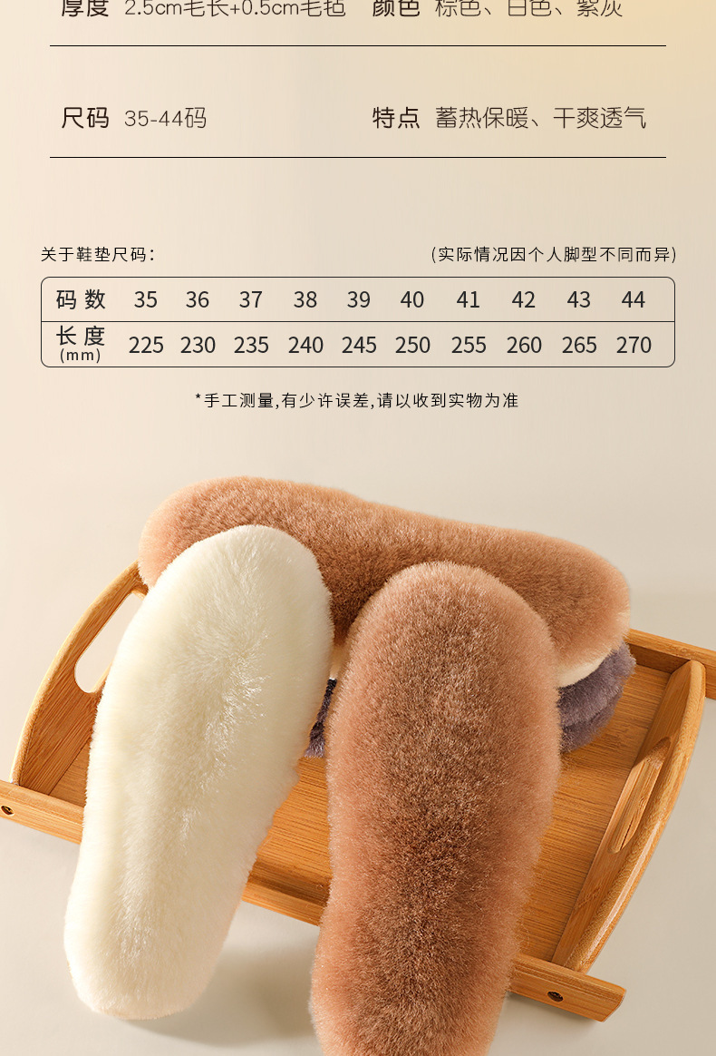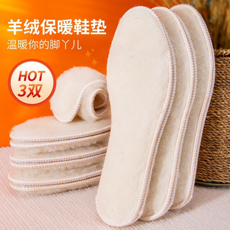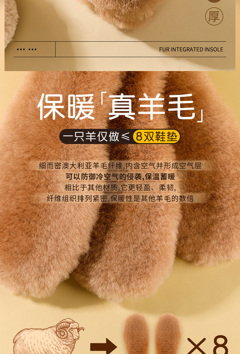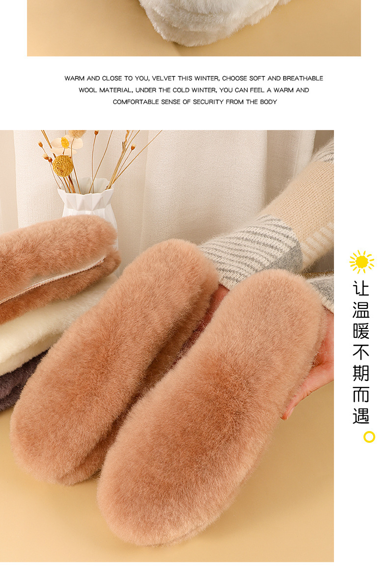 保真羊毛冬季保暖鞋垫皮毛一体男女加绒加厚毛绒棉鞋垫防滑