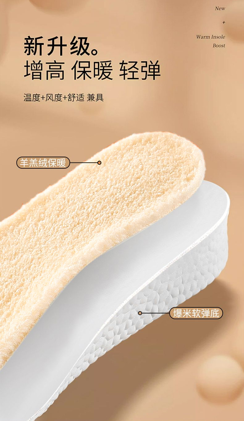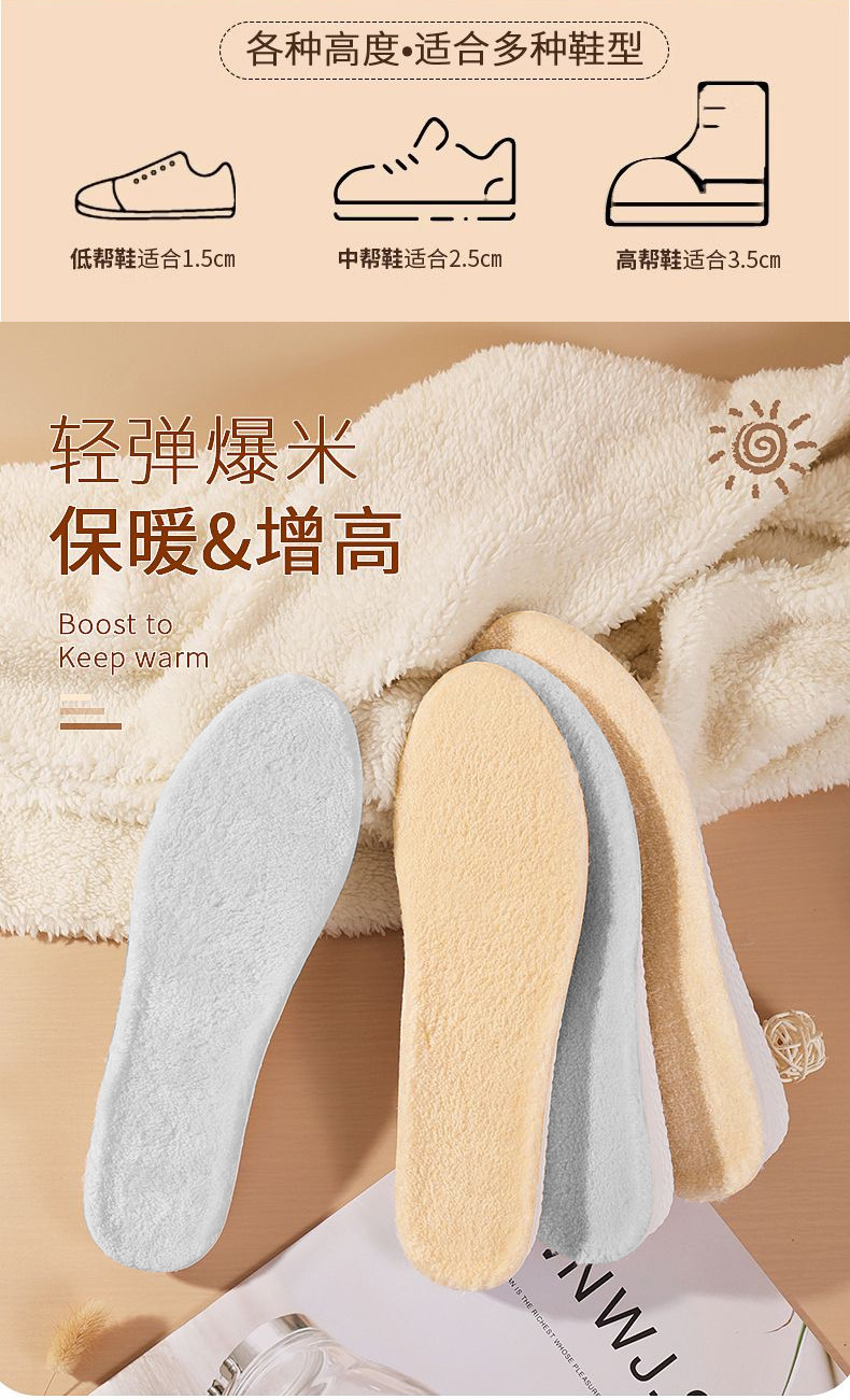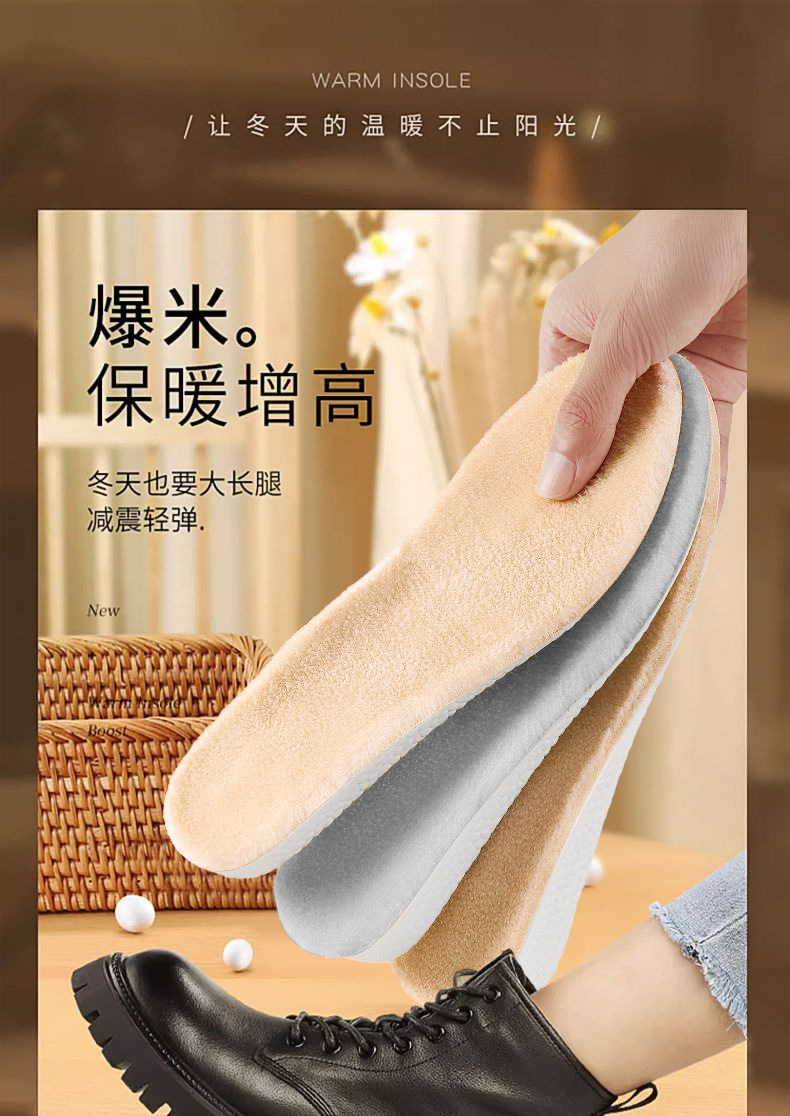 冬季加绒内增高鞋垫男女士马丁靴隐形保暖增高鞋垫加厚棉鞋垫