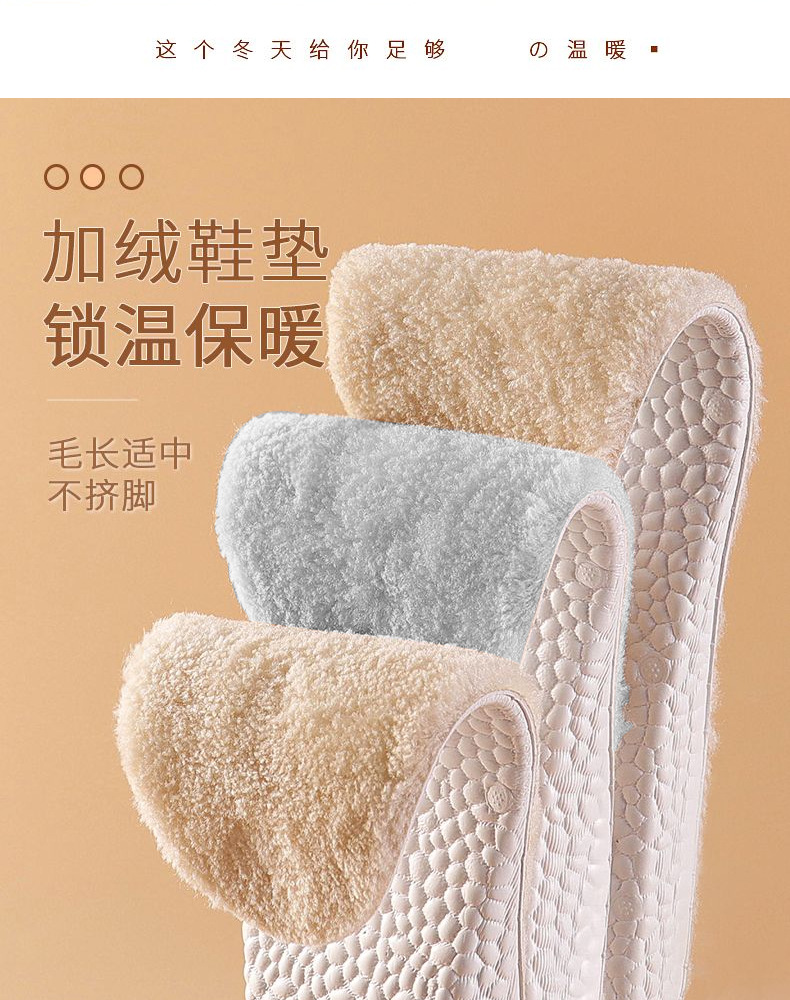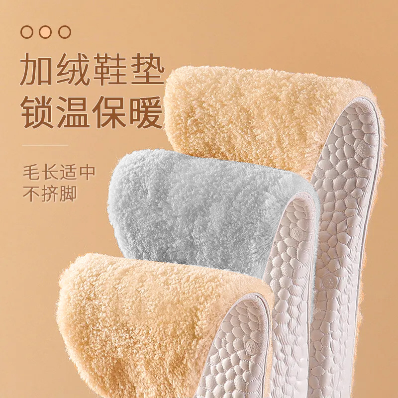 保暖鞋垫秋冬季加绒加厚男女款雪地靴羊毛吸汗防臭皮毛一体棉鞋垫