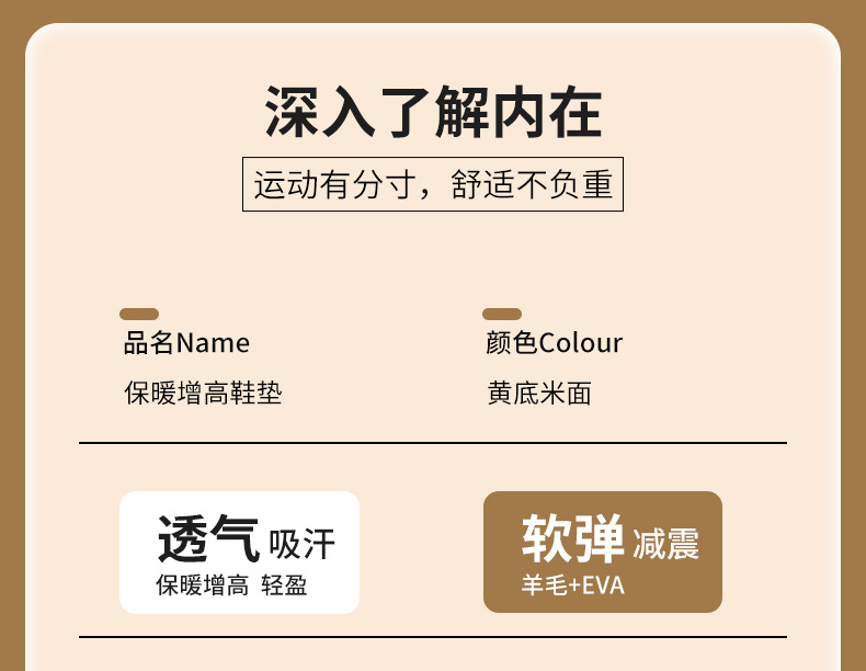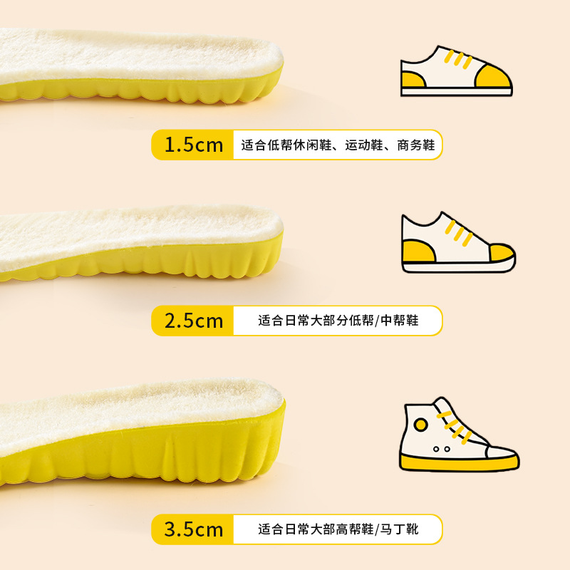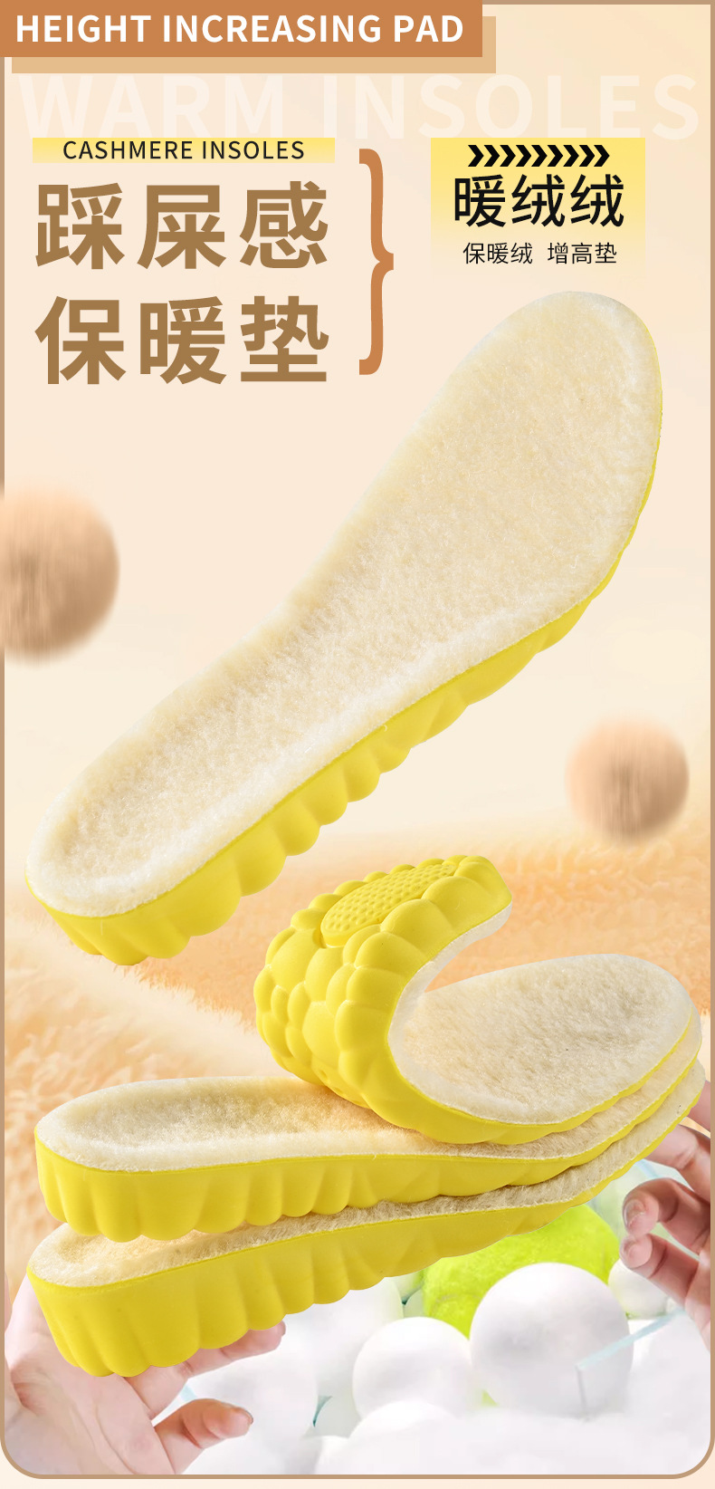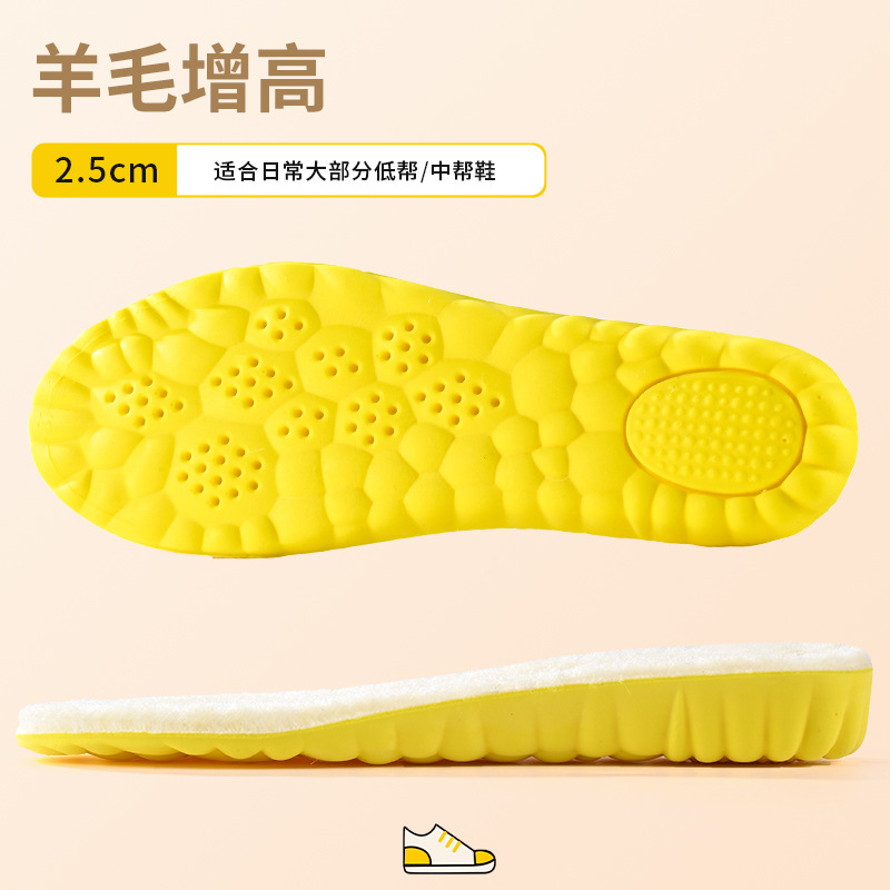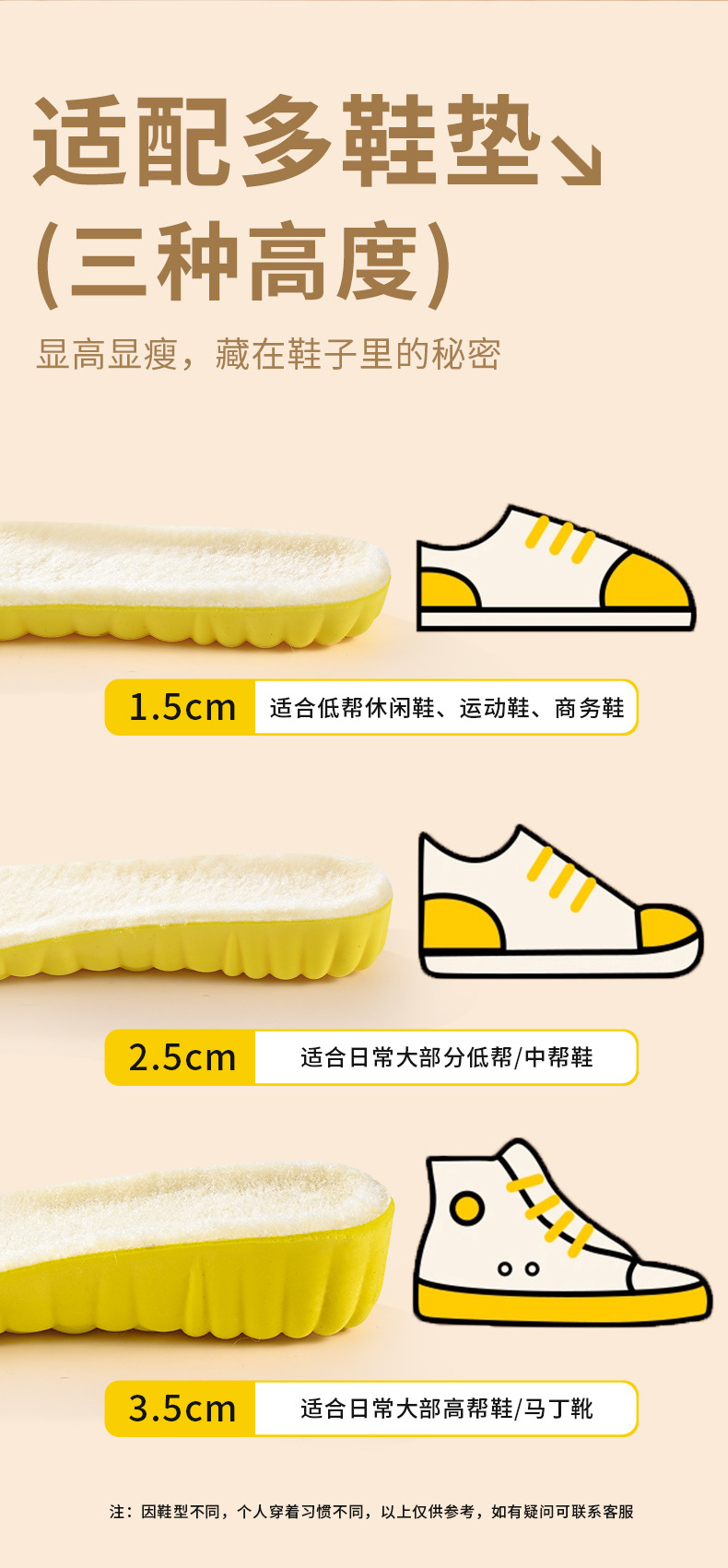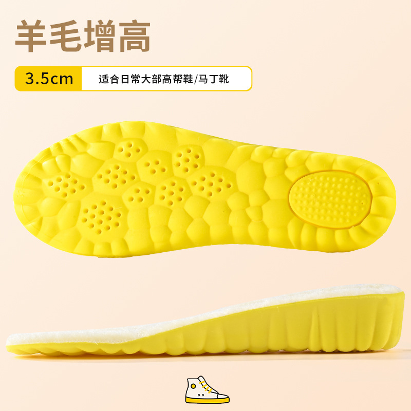 4D云朵冬季保暖增高鞋垫羊毛加绒加厚隐形不累脚马丁靴男女内增高