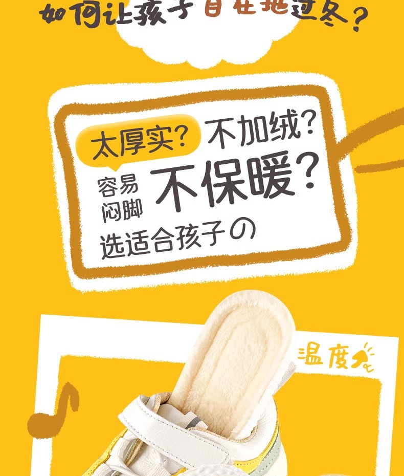 冬季儿童保暖鞋垫加绒加厚小孩棉鞋宝宝运动减震防寒透气吸汗防臭