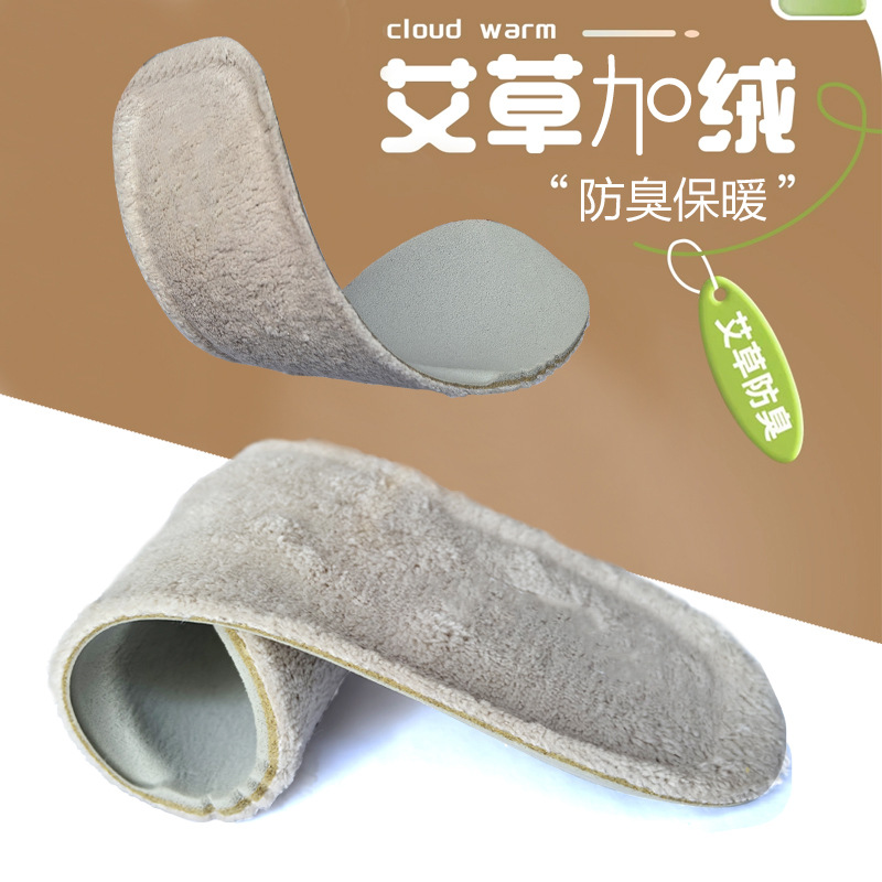 冬季加绒加厚保暖鞋垫女士恒温透气吸汗防臭舒适珊瑚绒艾草棉鞋垫