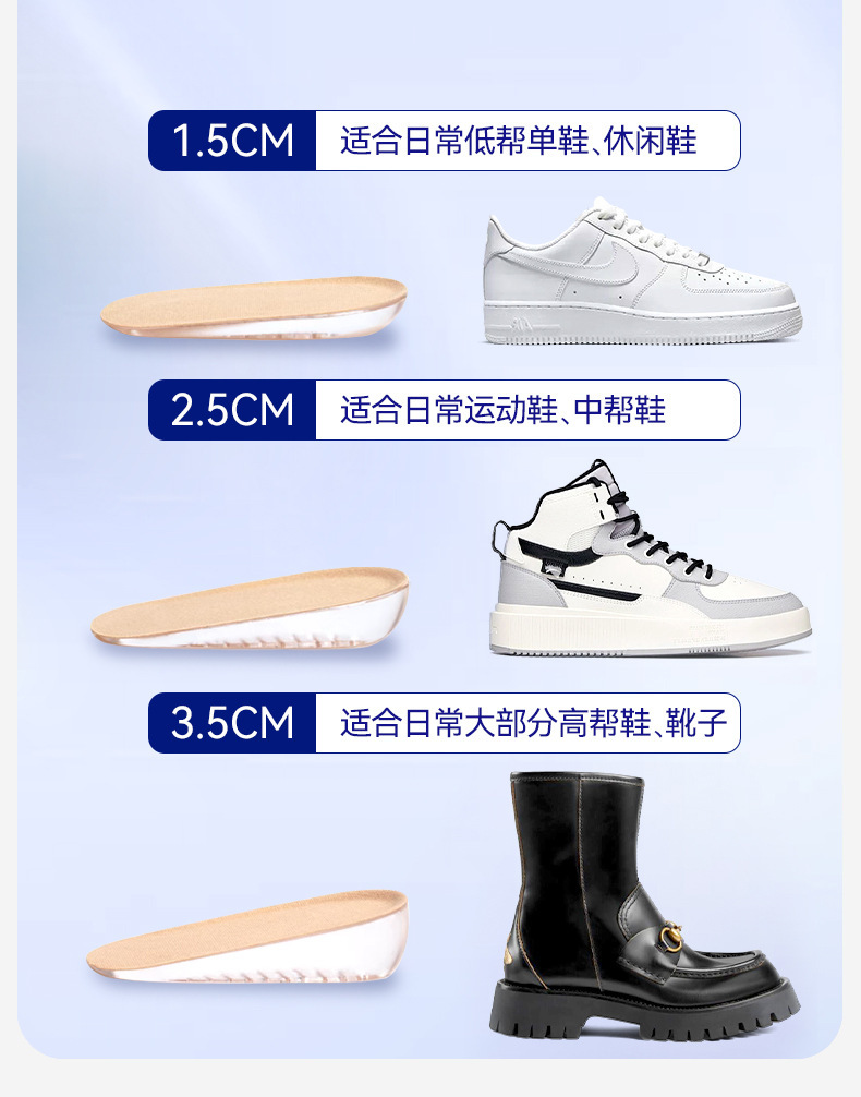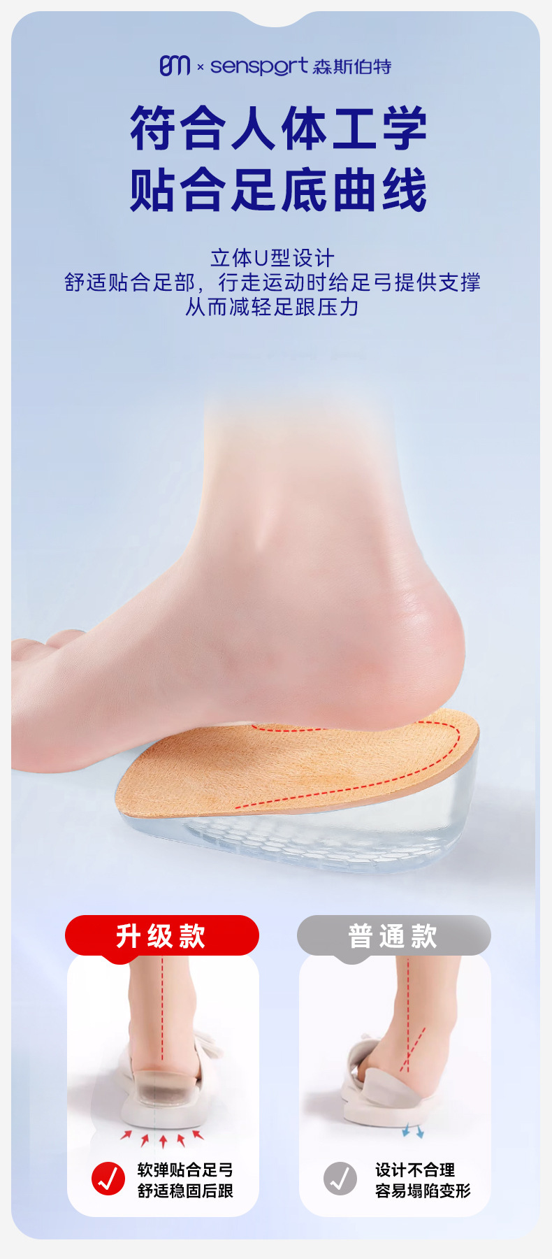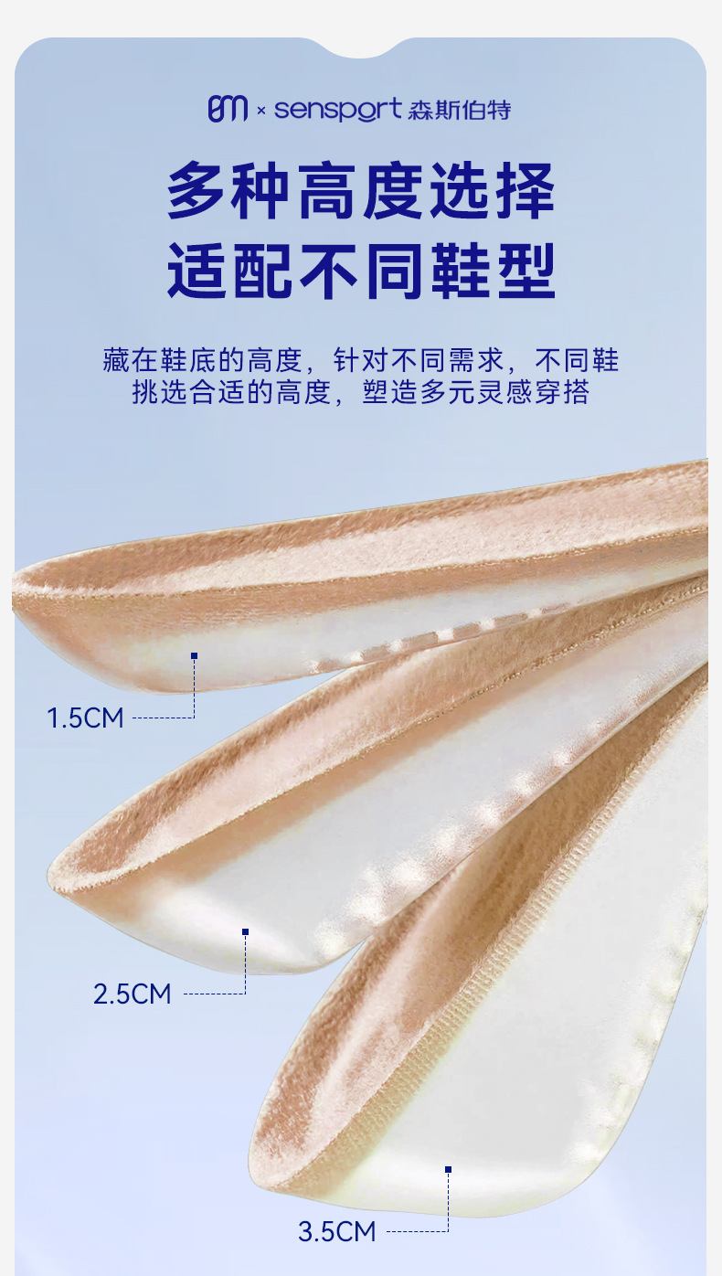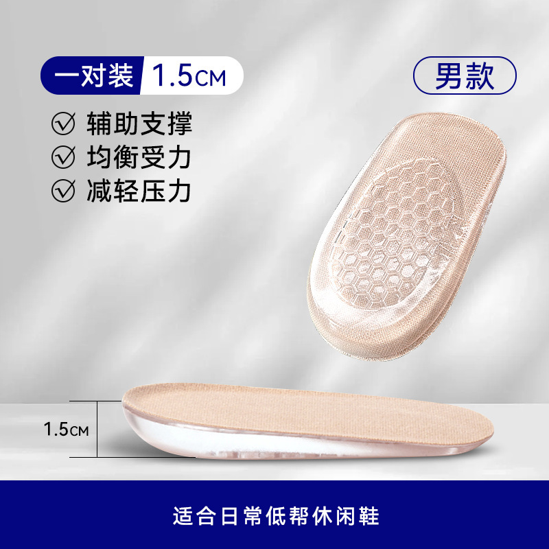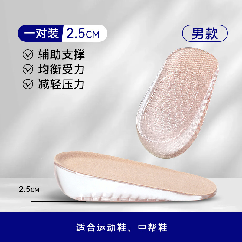 隐形内增高鞋垫凝胶弹性支撑马丁靴皮鞋小个子半垫走路不累脚鞋垫