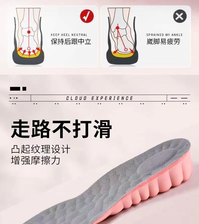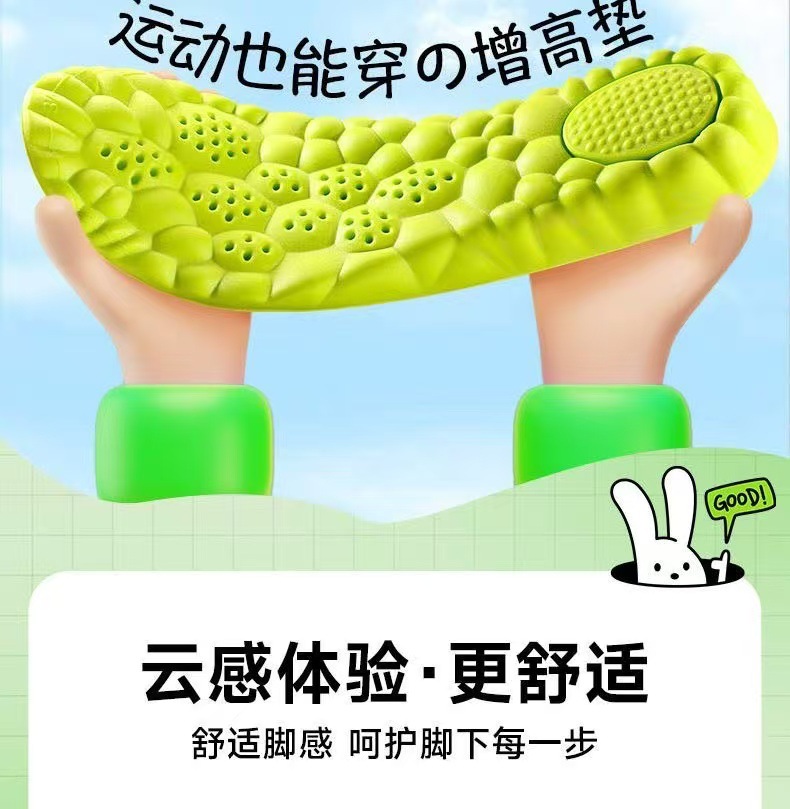 足弓内增高鞋垫男隐形增高垫软底boost爆米花舒适运动增高鞋垫女