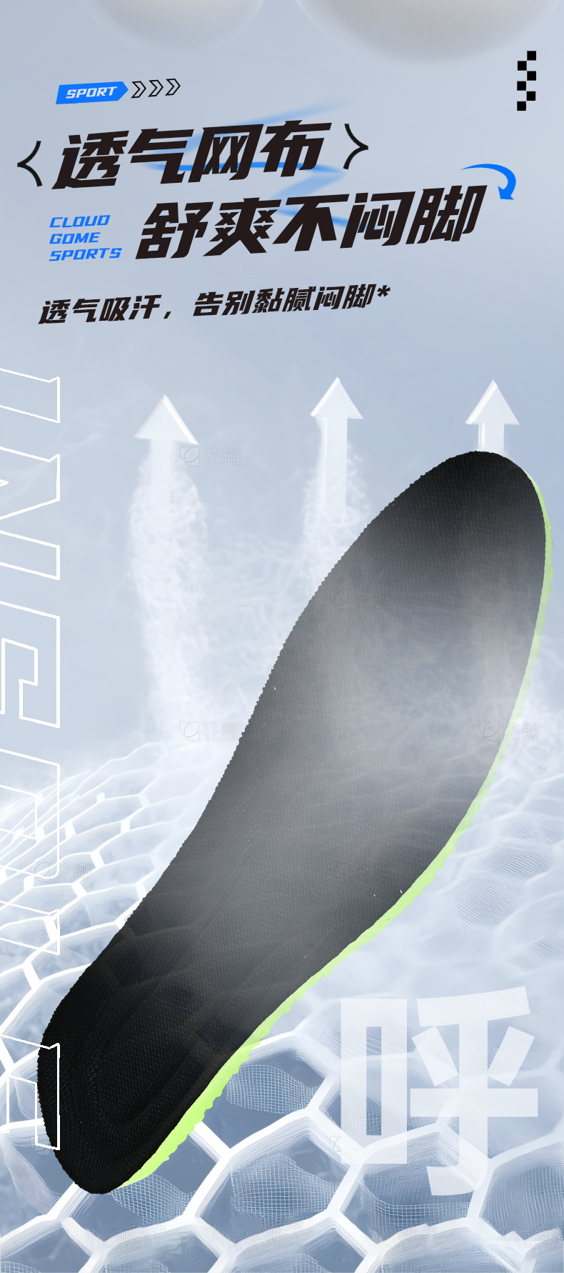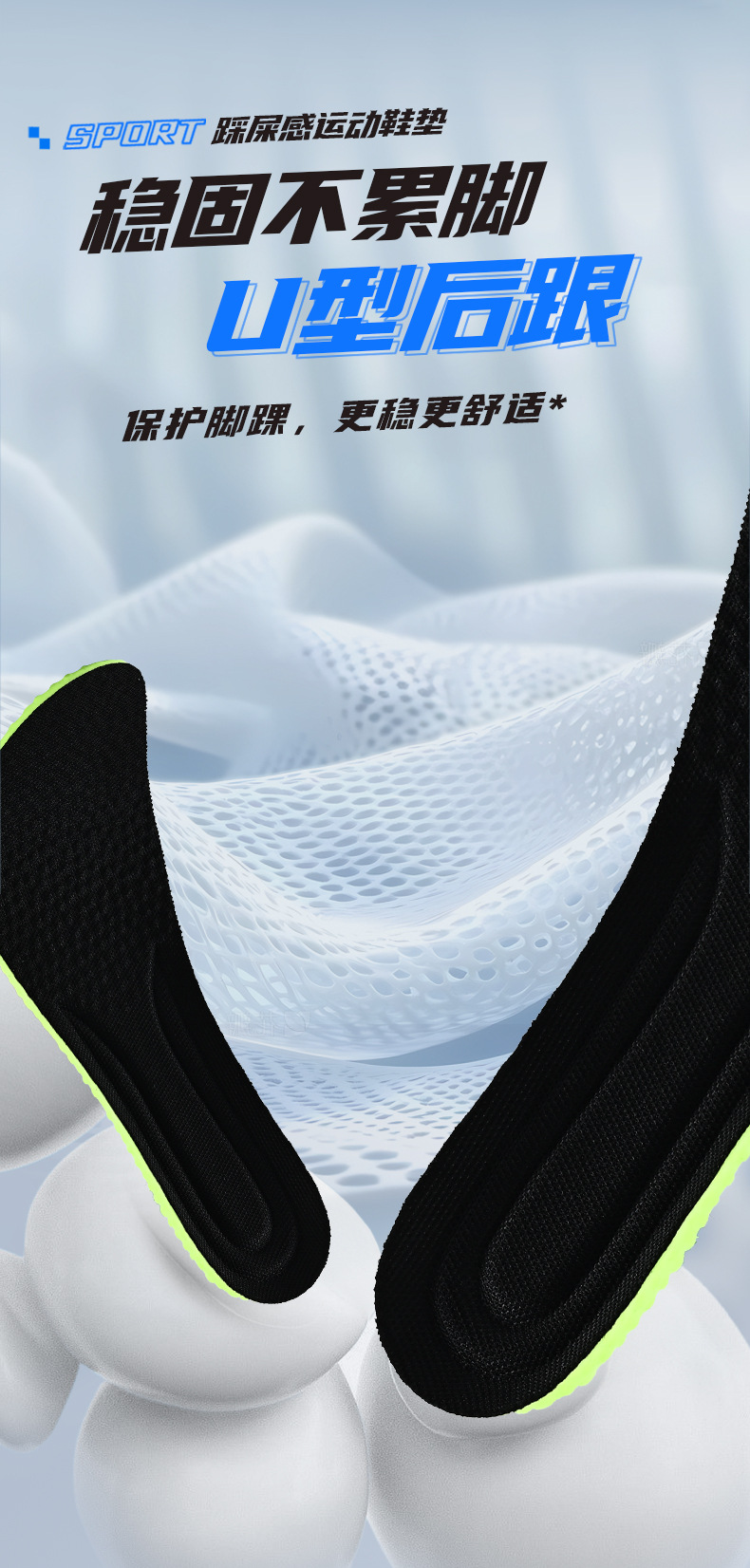鞋垫7A级抑菌消臭运动透气吸汗高弹减震休闲跑步篮球羽毛球薄款