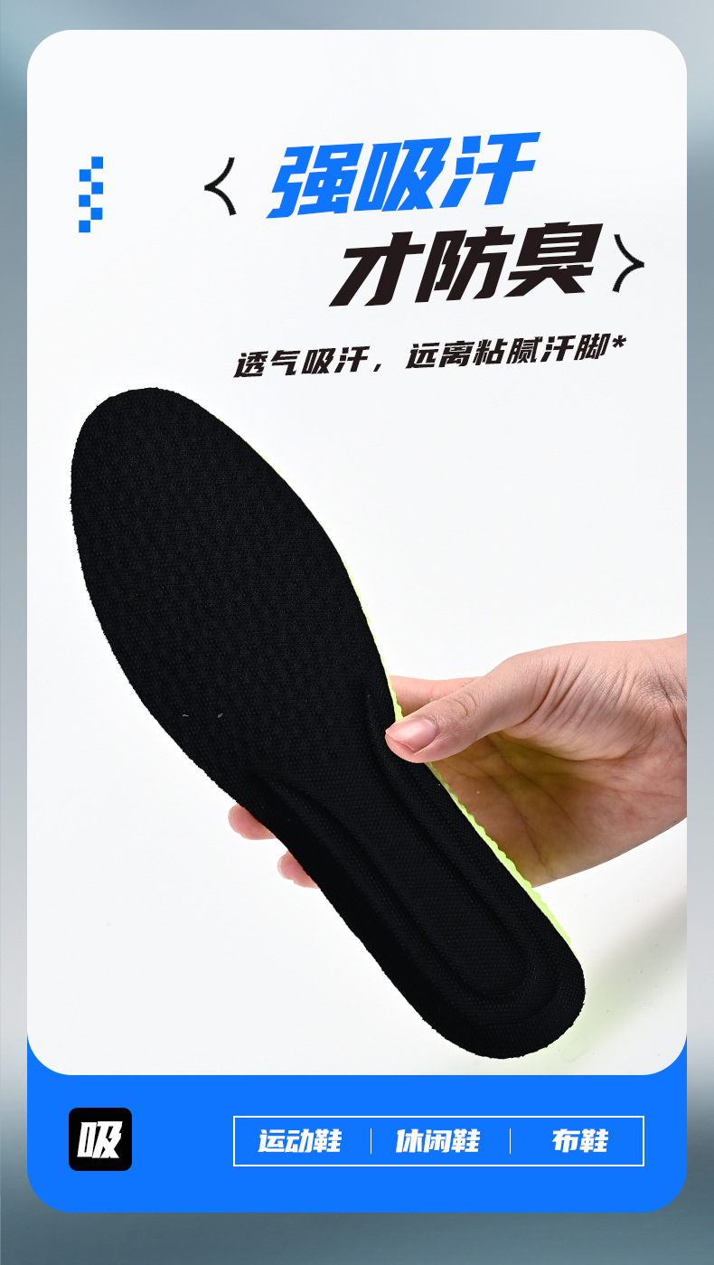 足迹优品除臭鞋垫男女四季汗脚专用吸汗透气软舒适加厚防臭运动